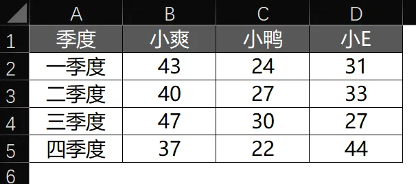 这里面还隐藏着一个包含条件。一年有四个季度。每个季度有三个业务员的销售数据。
