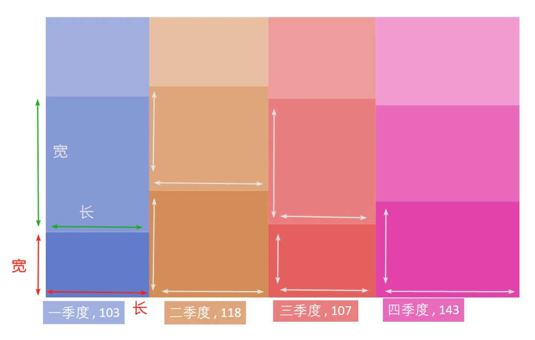 由于树状图中每个季度中的长和宽没有一个固定的值,所以很难直接通过肉眼,