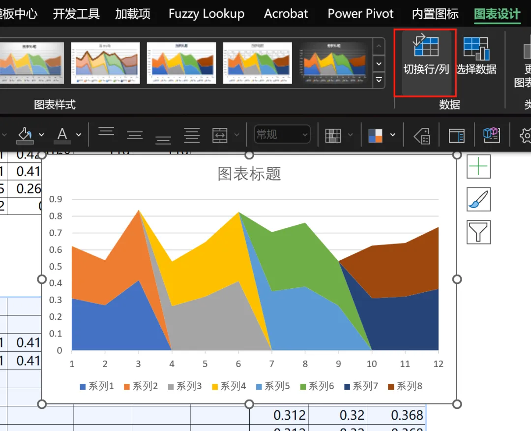 我们要按照每一行作为一个系列,由于直接插入的图表是按照列的,所以我们需要切换行和列。