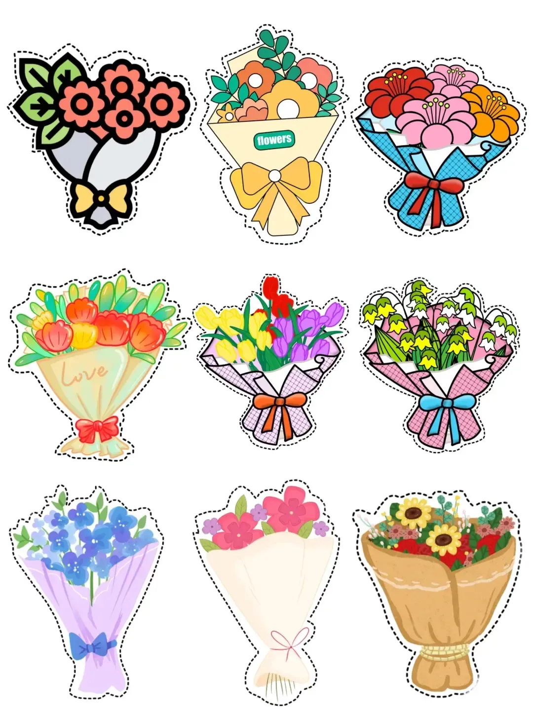 幼儿园妇女节手工剪纸花束,可打印