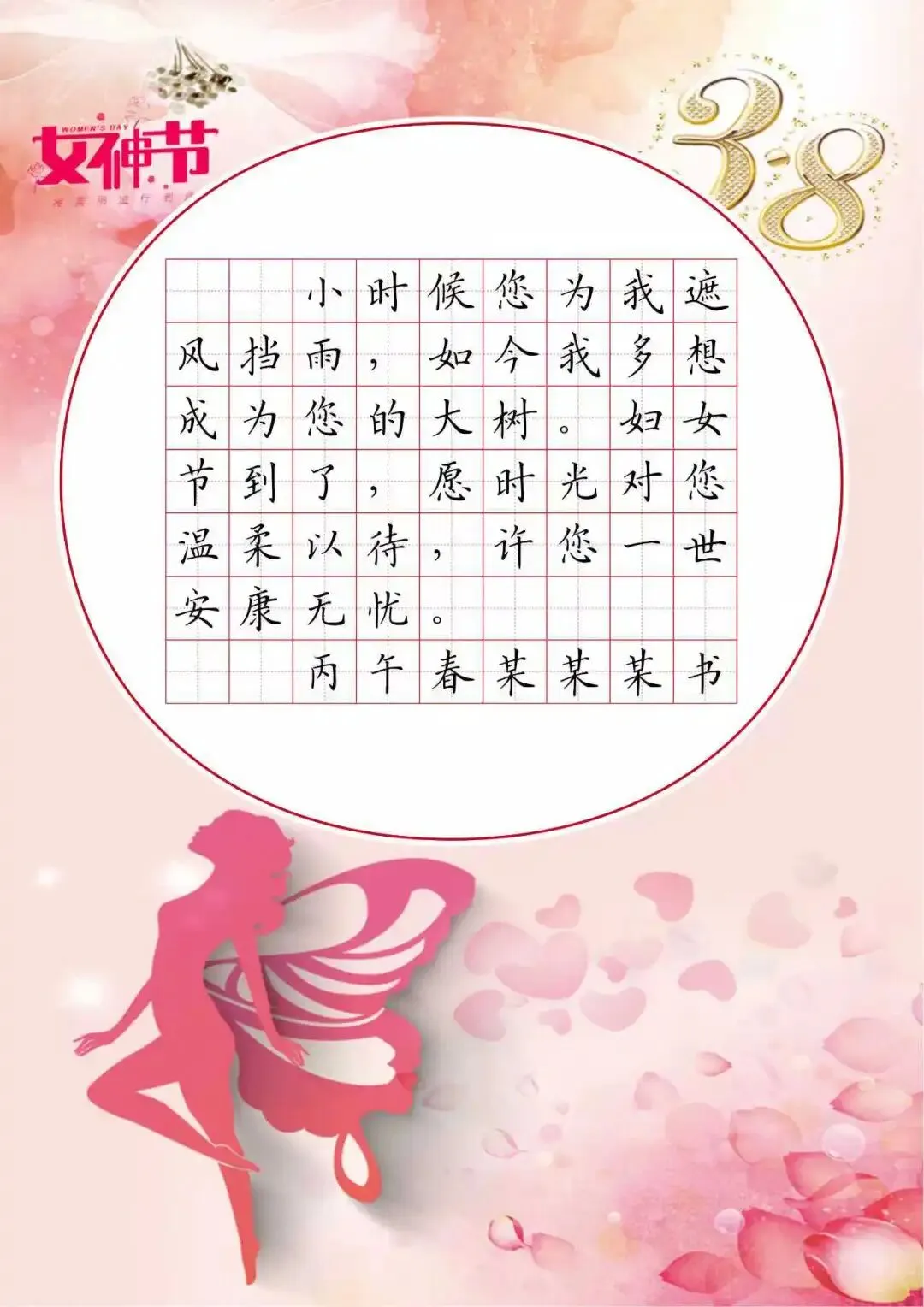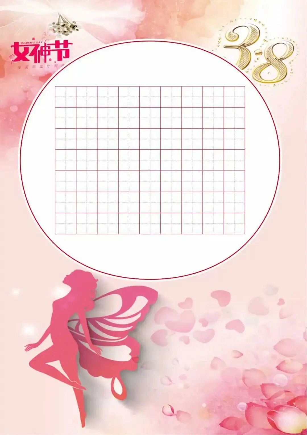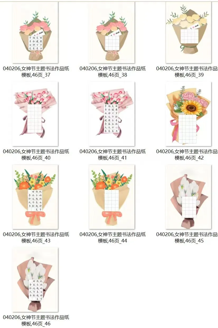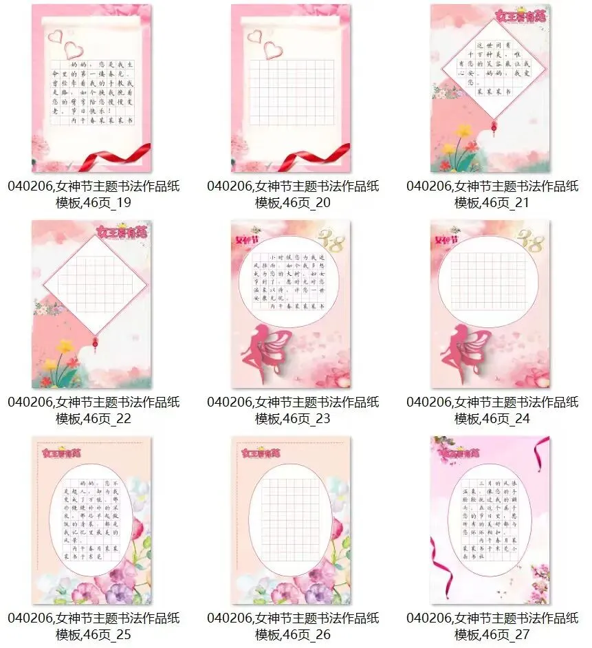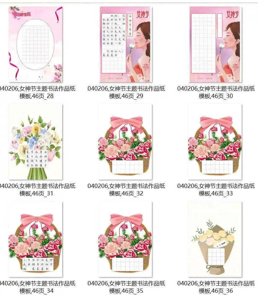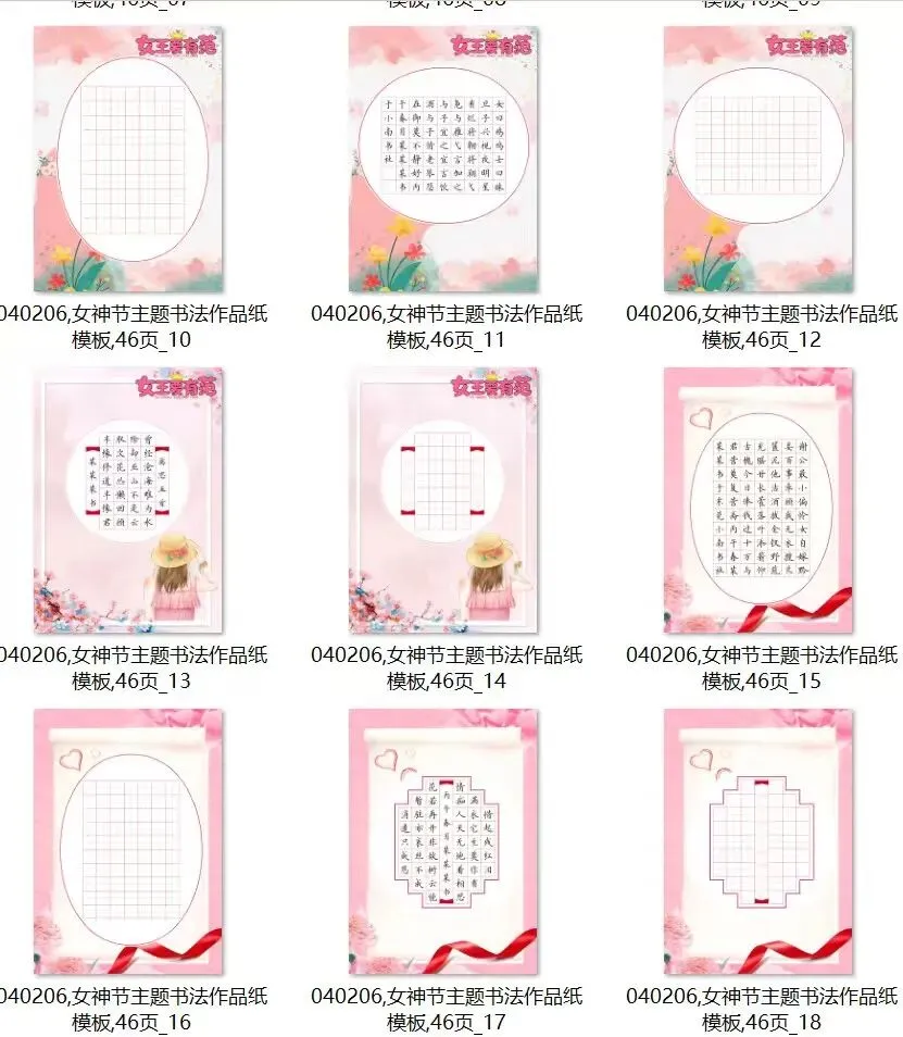 3.8女神节 硬笔书法作品纸,电子版46页.田字格 适合各个年龄段同学书写.