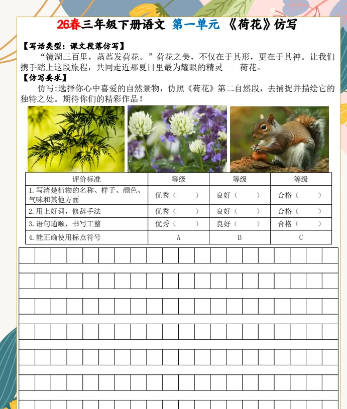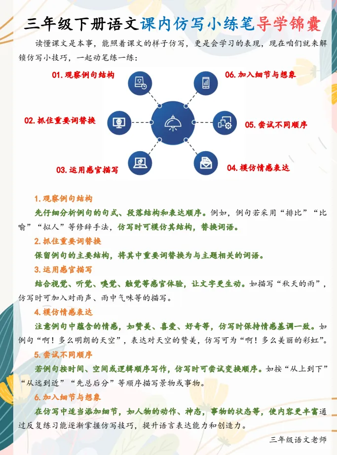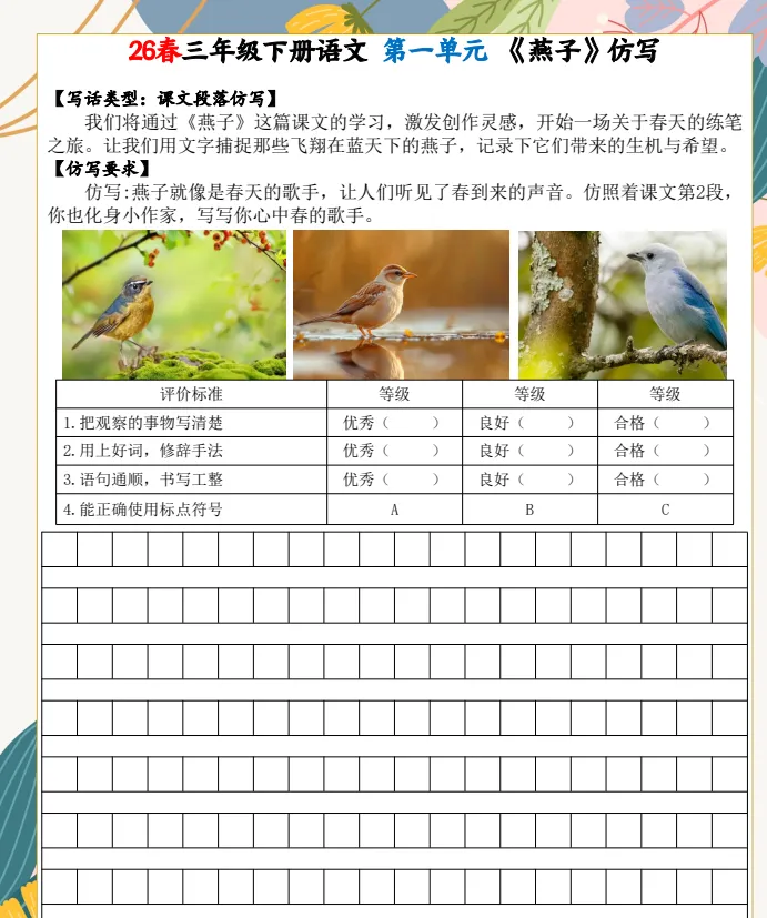 26年春最新版三年级下册语文 课内仿写小练笔 最新整理 PDF 可打印