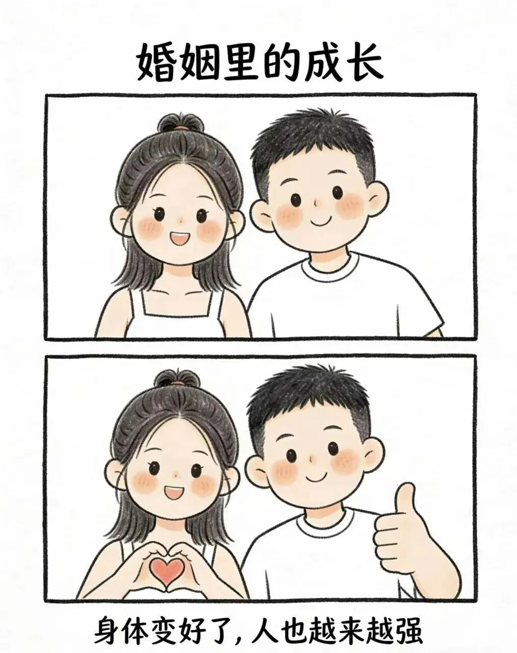 幸福的婚姻不仅能给人力量,还能让人变得更健康。那是因为有人在身后支持你,你会觉得有了应对一切力量;同时,为了守护对方,你也会变得更有勇气与担当。好的夫妻,就是互相成就,你变好,另外一个人也会跟着变好。