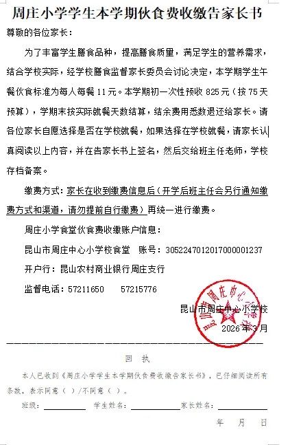 本学期学生伙食费仍将在学期末按实际就餐天数结算,结余的费用会通过农商行缴费卡号悉数退还给家长。