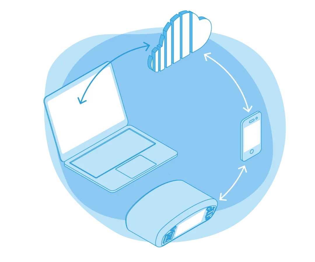 移动传输:打开云应用 APP,与仪器连接,上传数据至云端;