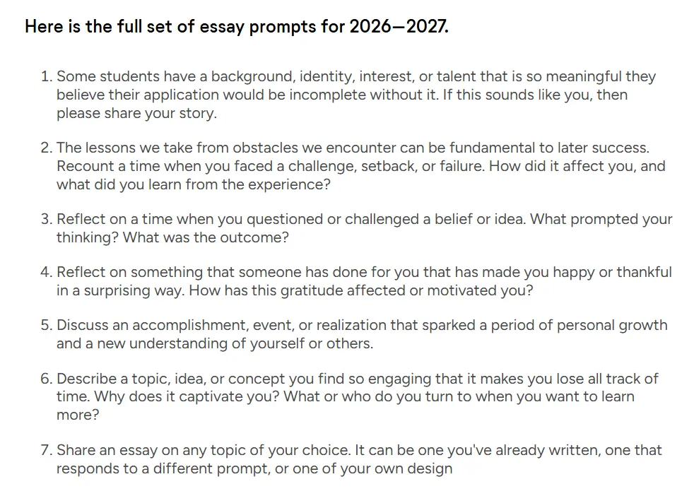 Ref:https://www.commonapp.org/blog/announcing-2026-2027-common-app-essay-prompts