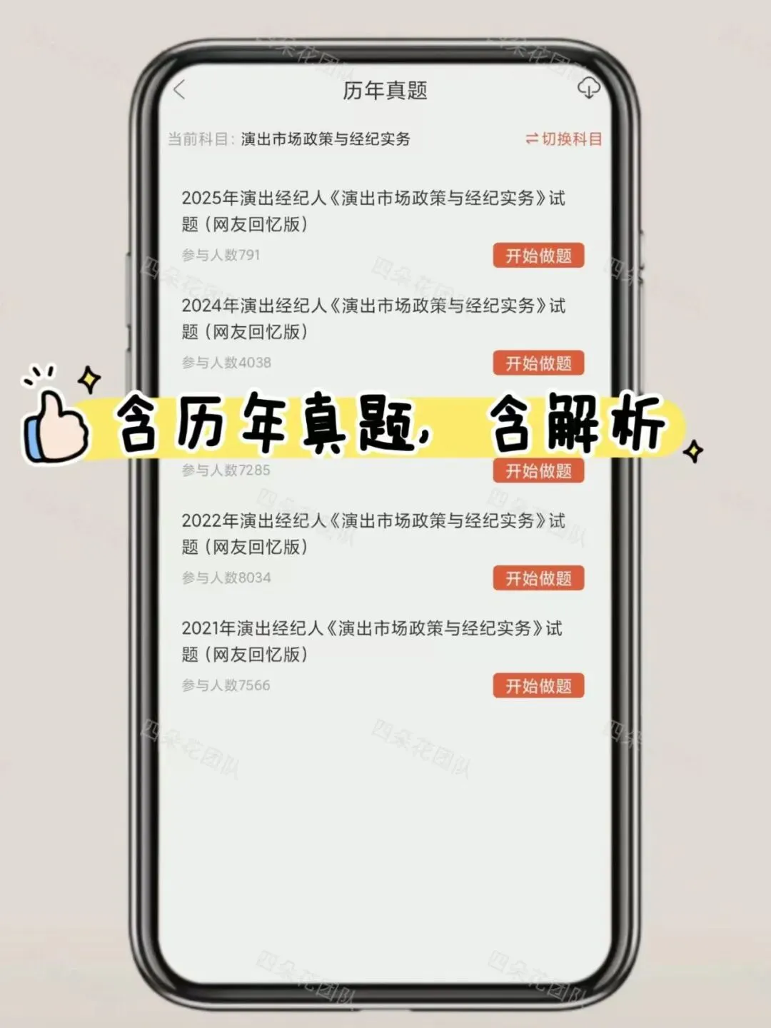 2026年演出经纪人必备神器:这个题库APP让备考事半功倍! 26年演出经纪人报名时间: 4月15日9:00-4月21日17:00 缴费截止时间:4月22日17:00 准考证打印时间:5月25日9:00起 考试时间:5月30日 距离考试还有两个多月 今天小编给大家带来了演出经纪刷题题库 一定要提前准备 高质量的历年真题+历年高频考题+全真模拟卷 每道题都有超详细解析 备考小白看完也能秒懂 大家快刷起来吧! 部分内容展示 图片太多就不一一展示了 想上岸 抓紧时间备考吧 关注下方公众号 后台回复关键词:题库 获取