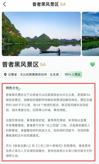打开找村APP,首页搜索或找到普者黑景区。