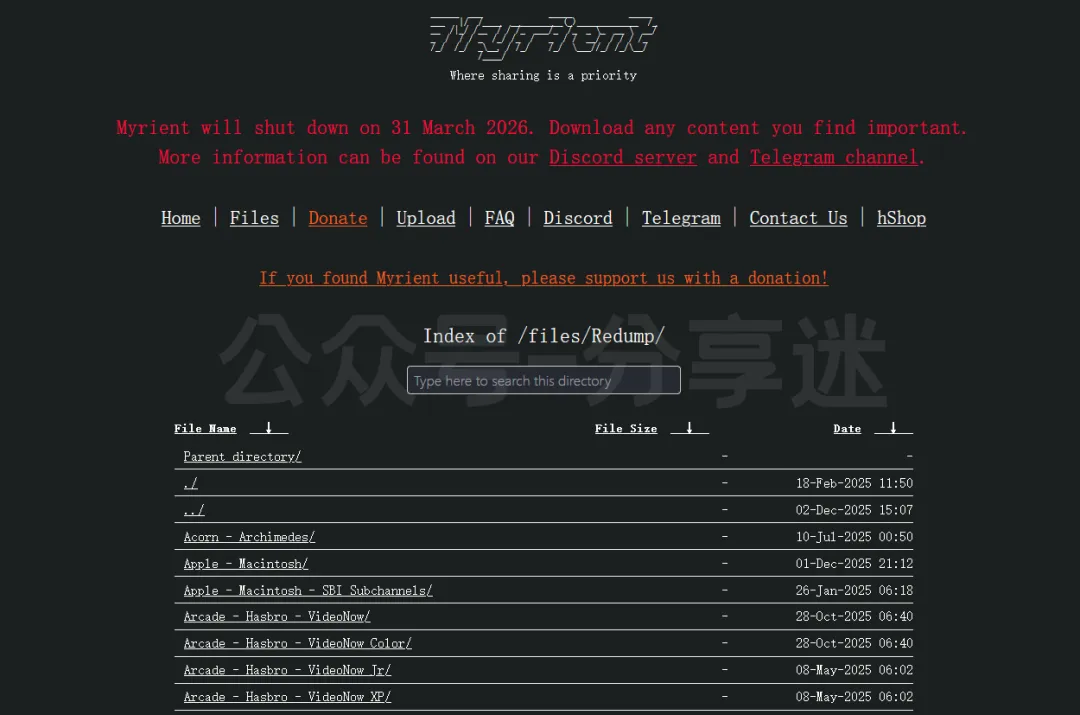 在 3 月 31 日之前,Myrient 会保持正常访问与下载,抓紧备份你刚需、稀有、难找的游戏 / 固件吧!