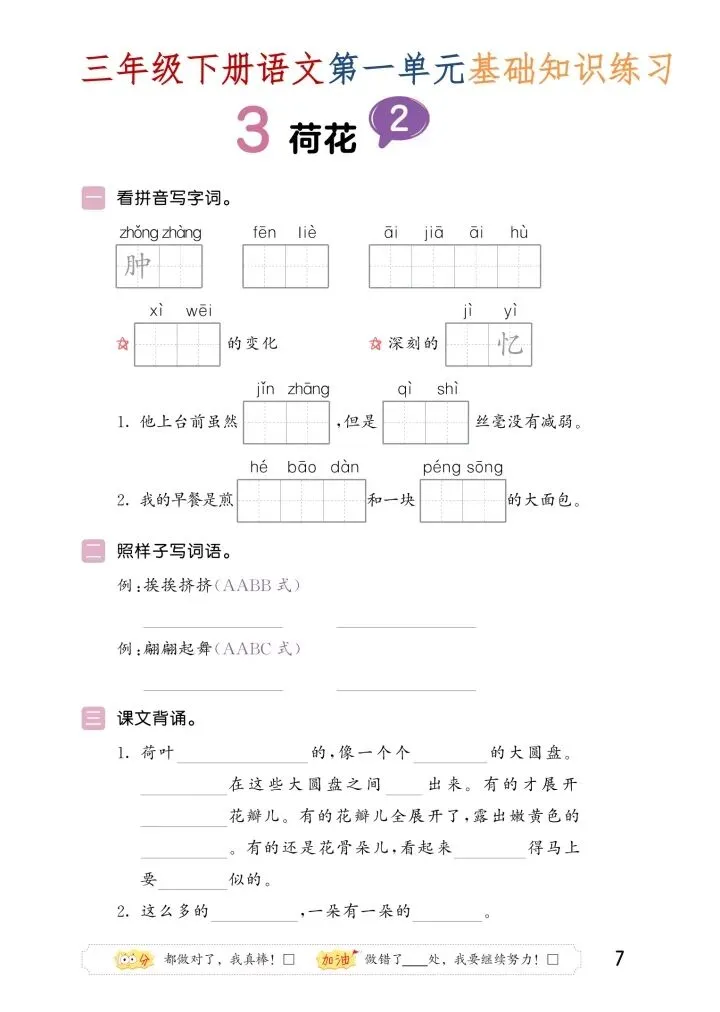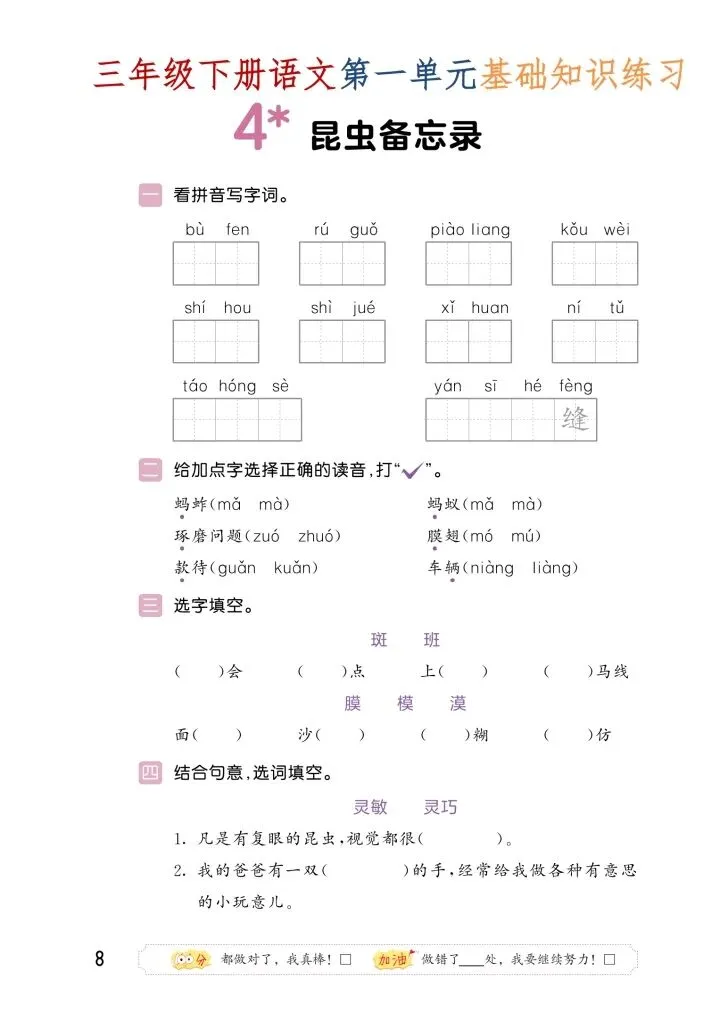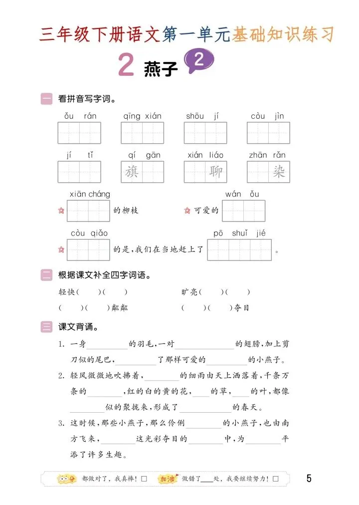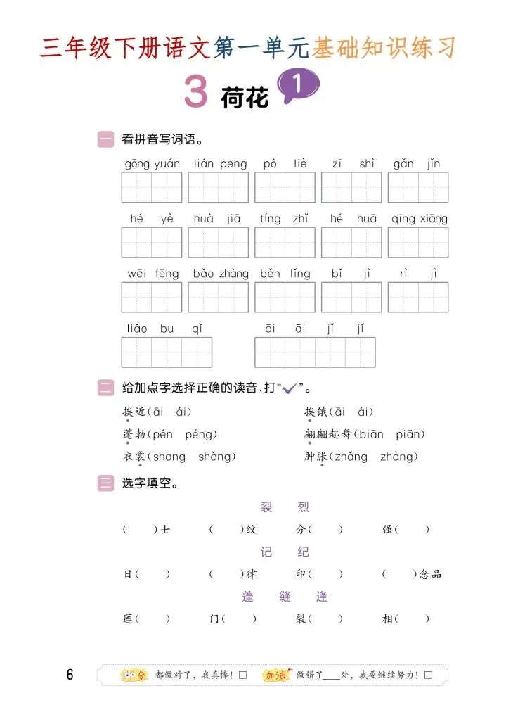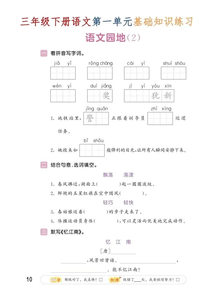 三年级下册语文第一单元基础知识练习.电子版可下载打印!