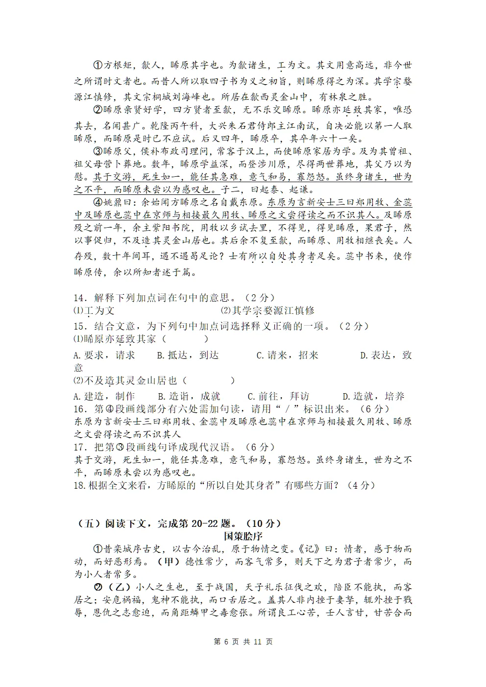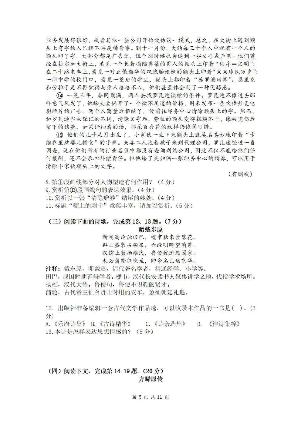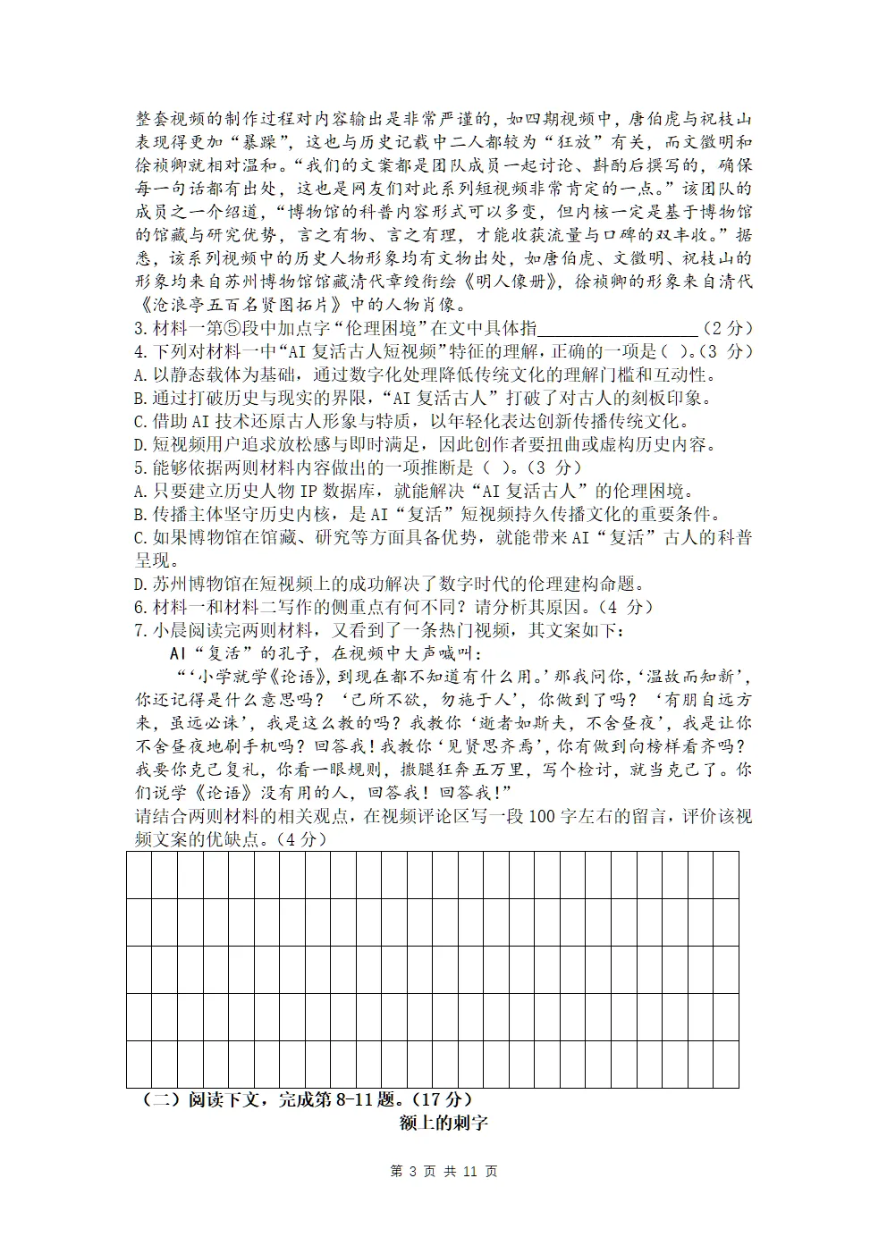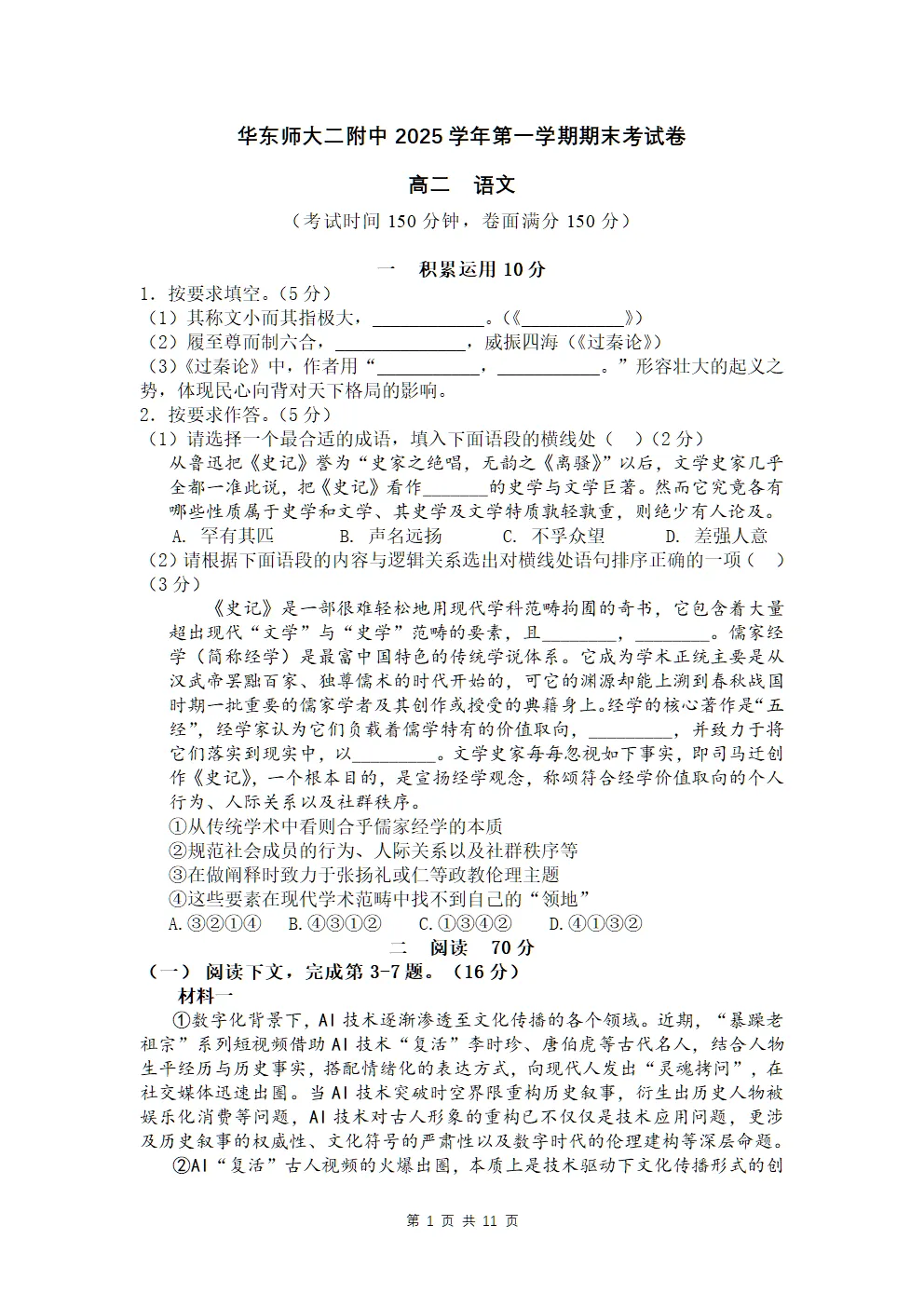 【PDF可下载】上海华东师大二附中2025-2026年高二语文上期末试卷+答案