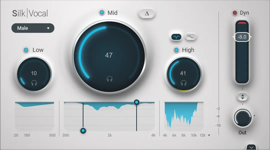 Silk Vocal是一款智能EQ和动态处理器,采用创新技术,能在2000个分析频段上自动检测共振,让你的人声从原始粗糙一步进入平衡与调和状态。