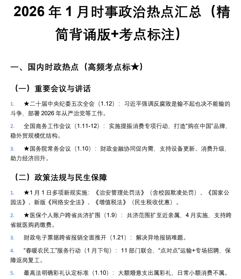 收藏|2026年单招时政热点汇总(免费下载)