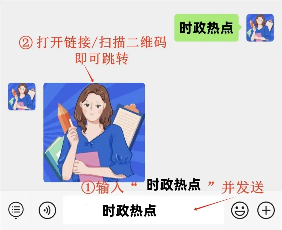2.在主页消息框发消息:时政热点,即可下载
