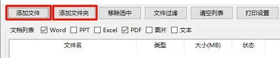 • 点击按钮添加选择单个或多个文档以及文件夹