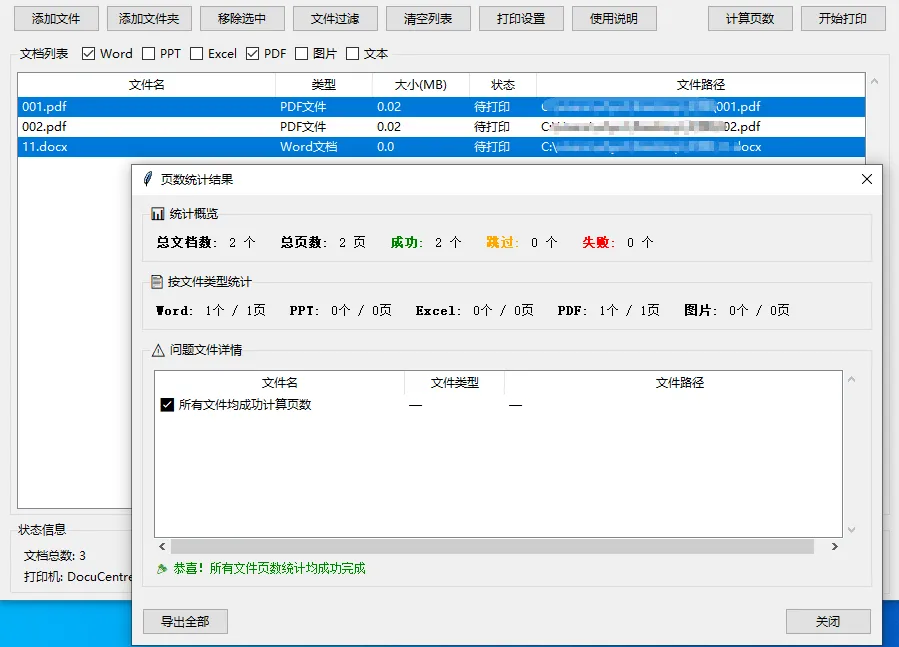 • 点击”计算页数”统计所有文档的页数