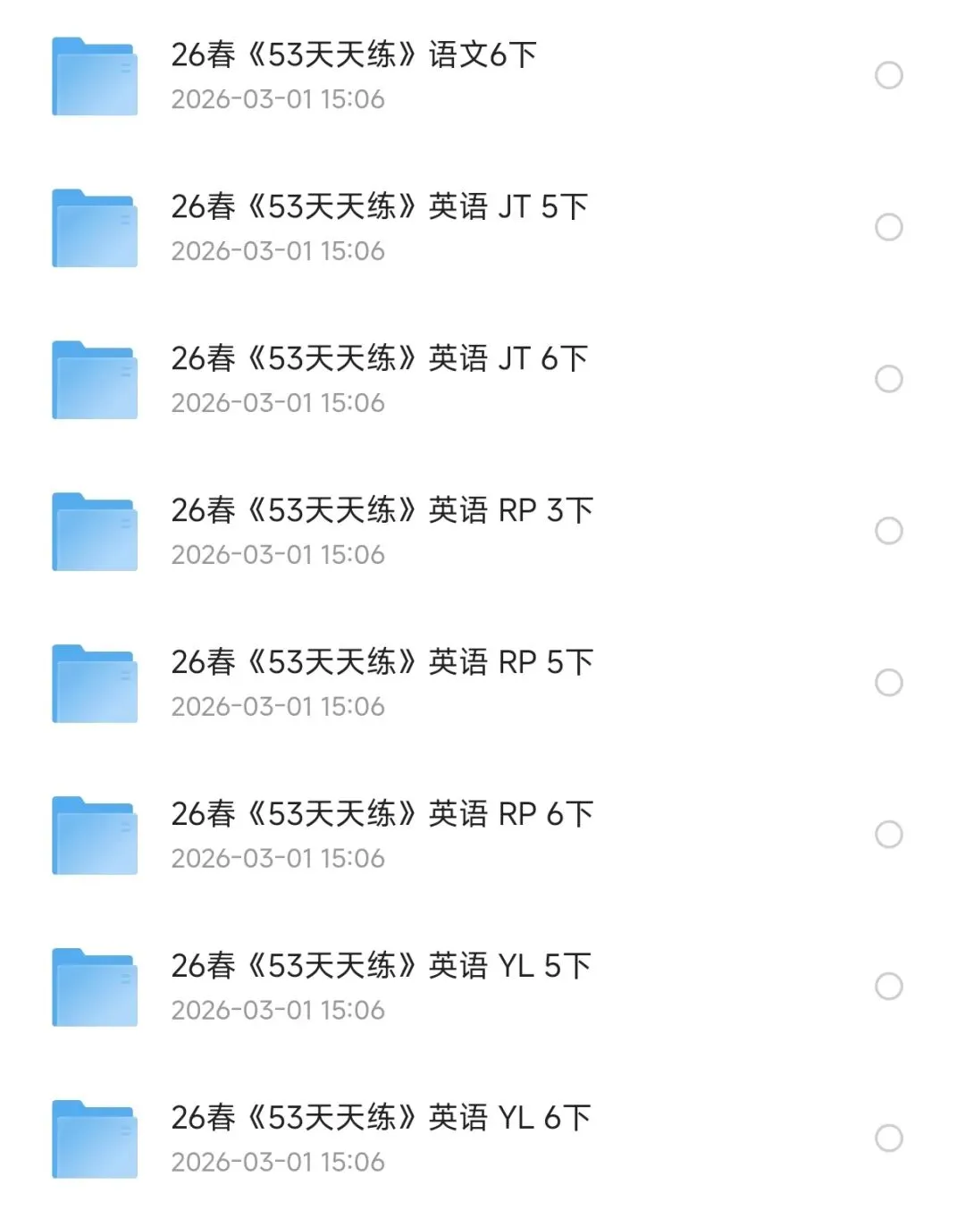 26春《53天天练》语文、数学、英语电子版(含测评卷)免费下载