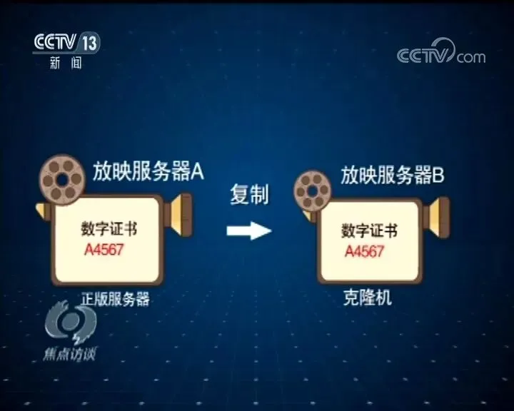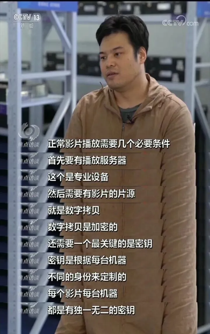 他们通过刷机的形式,克隆正规影院中的「播放服务器」,使其编码等各种数字证书,和正在使用的机器一模一样。