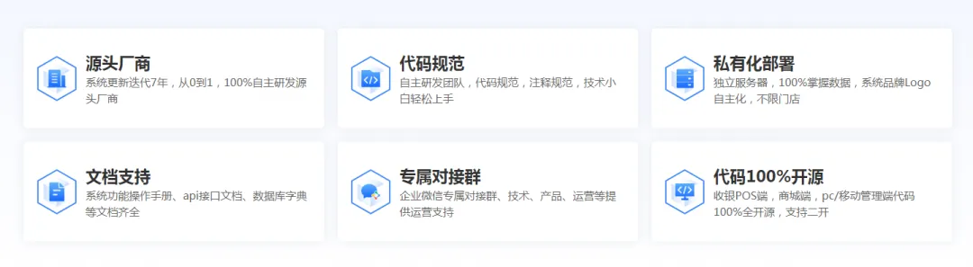 代码开源:收银pos端、线上商城端、pc/移动管理端整套代码100%开源;