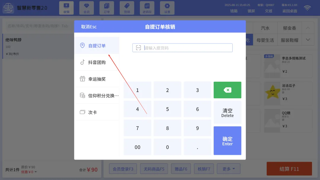 收银端核销