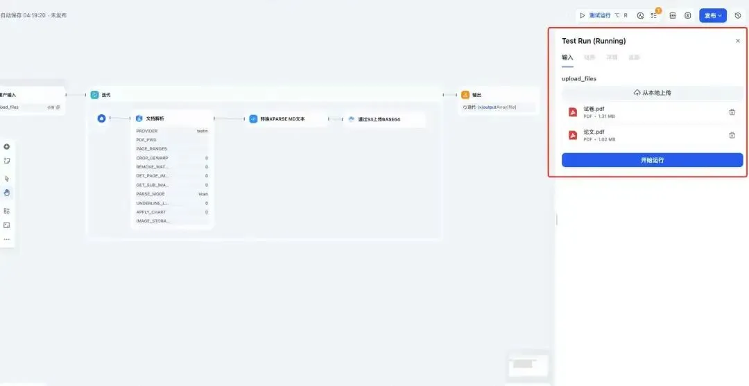 其他参数详情可参考插件说明文档(https://marketplace.dify.ai/plugin/intsig-textin/xparse)。