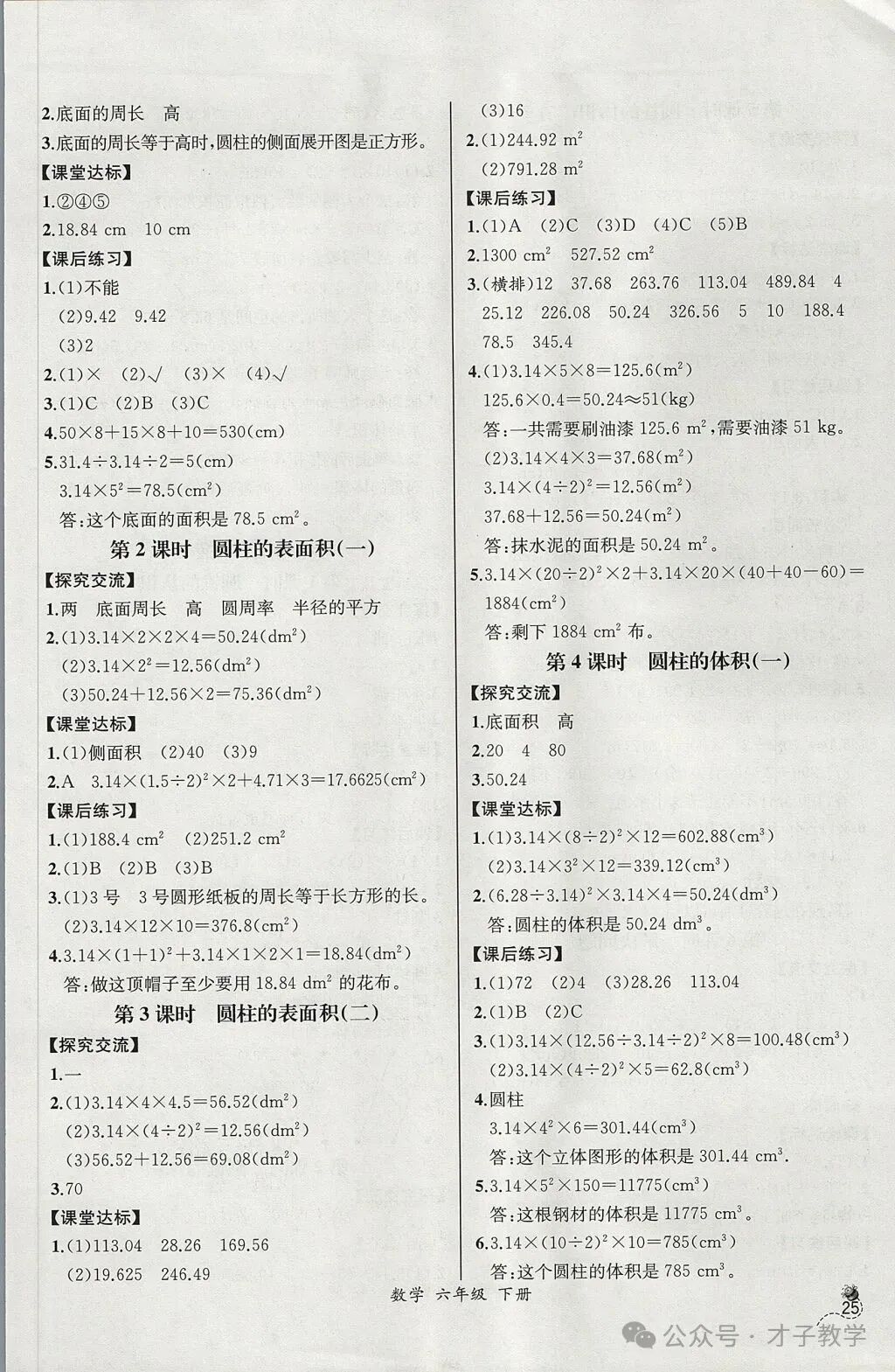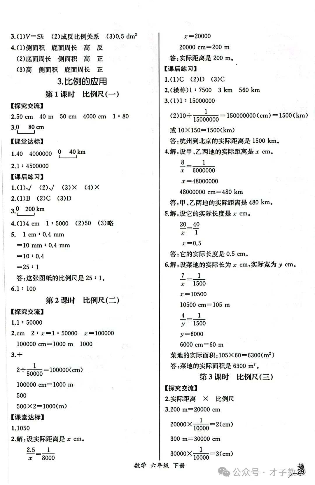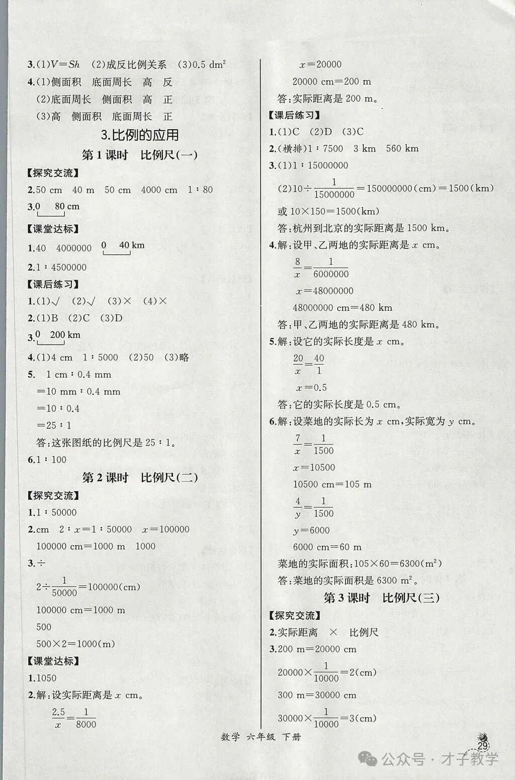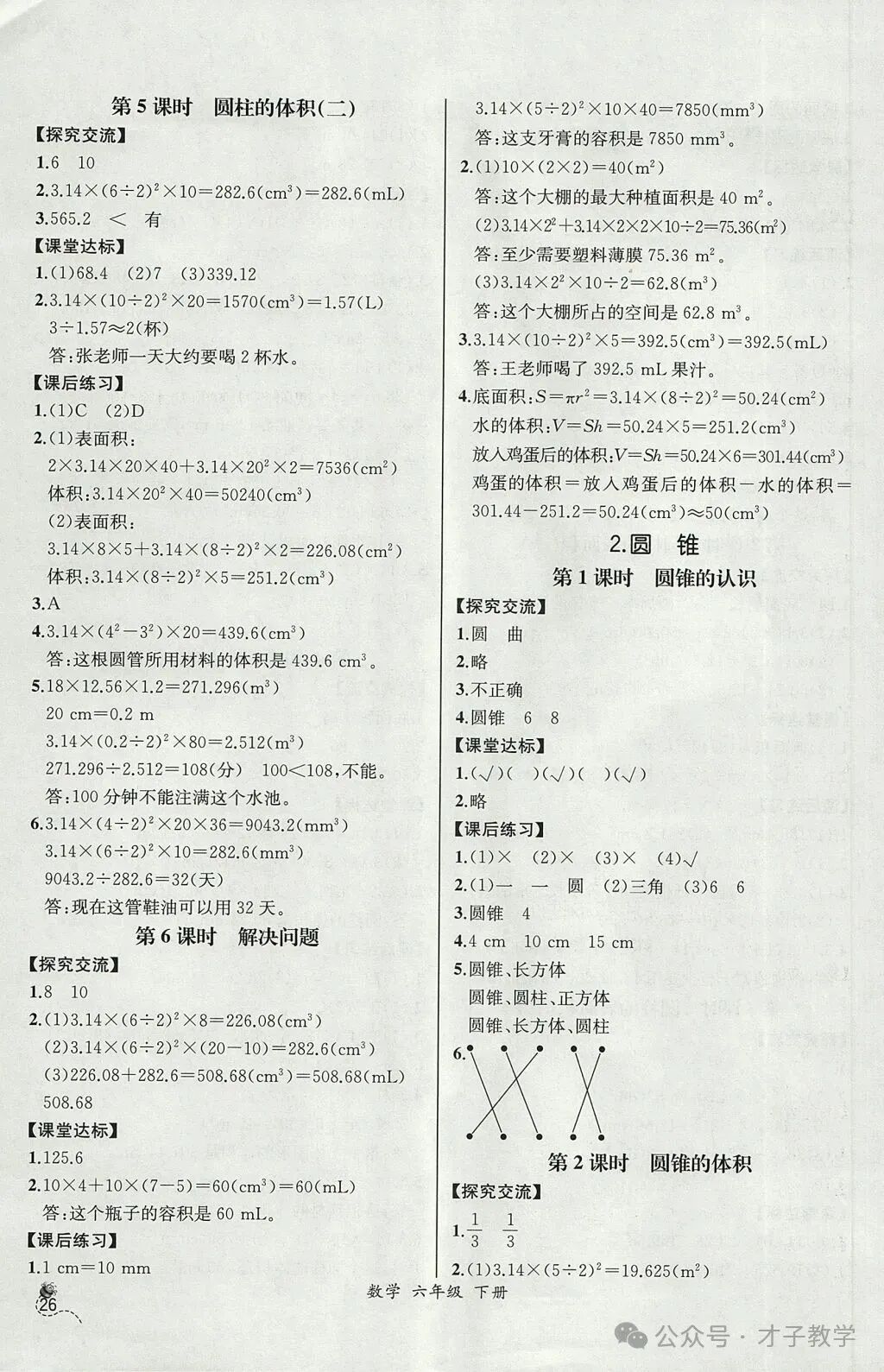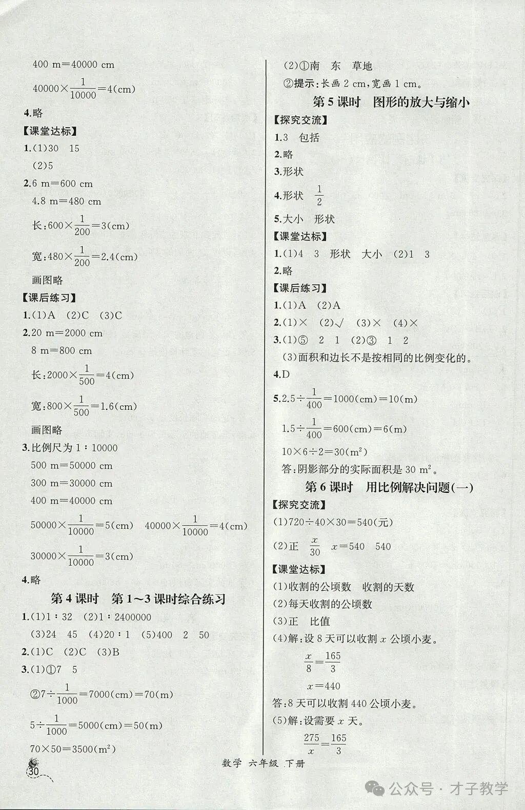 六年级数学下册课时练答案,可打印收藏