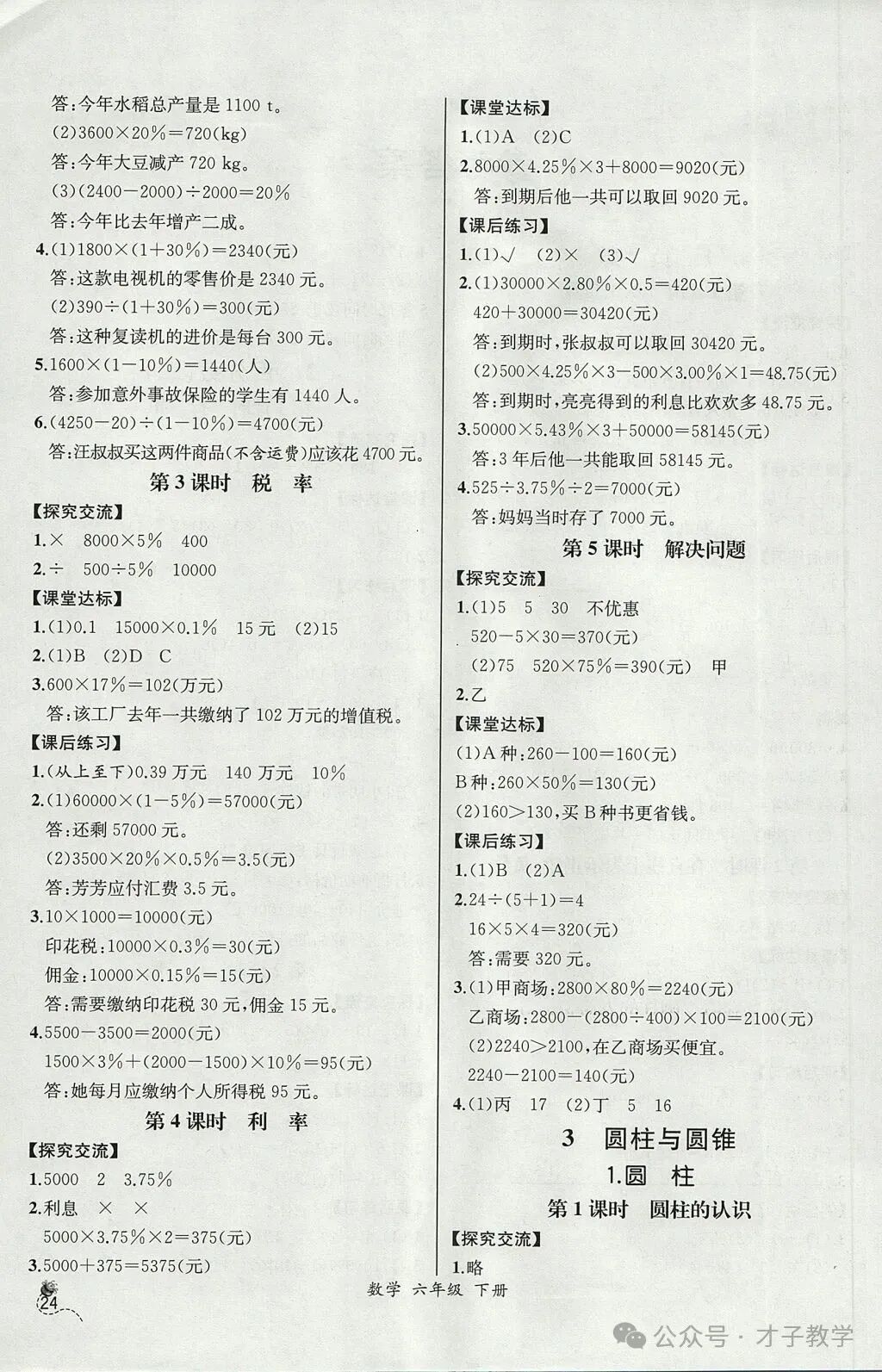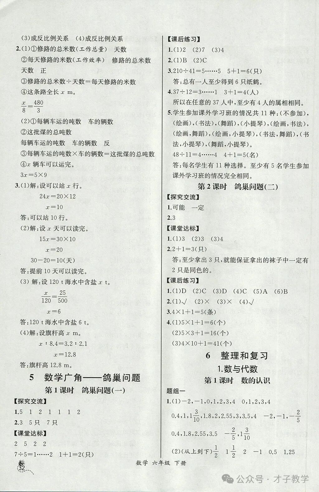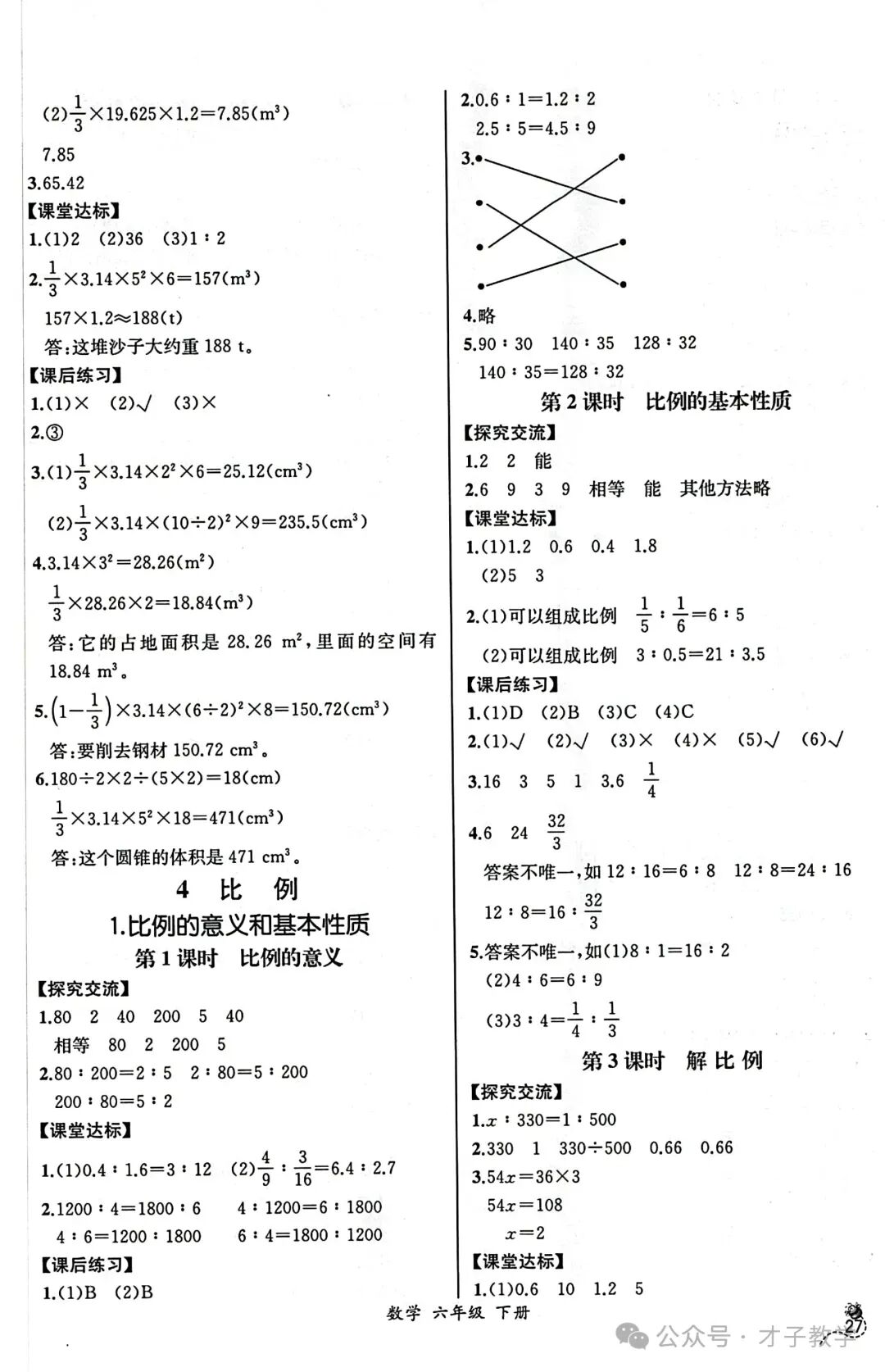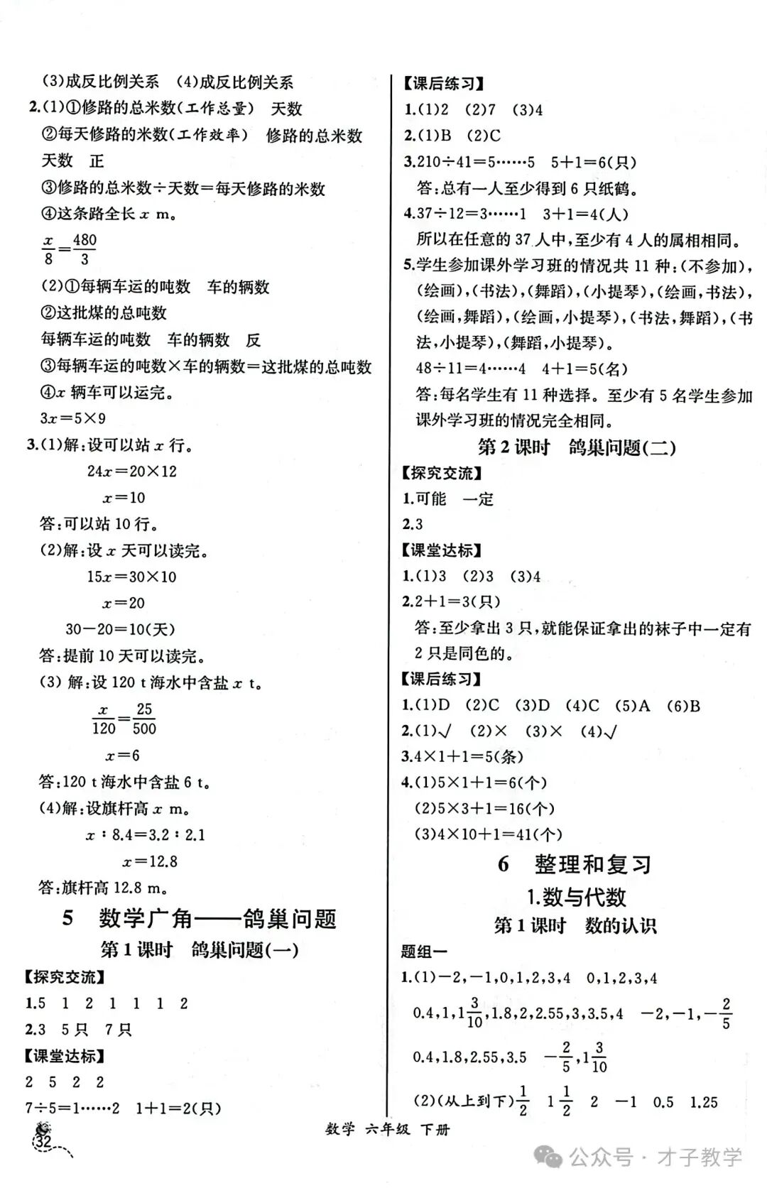 六年级数学下册课时练答案,可打印收藏