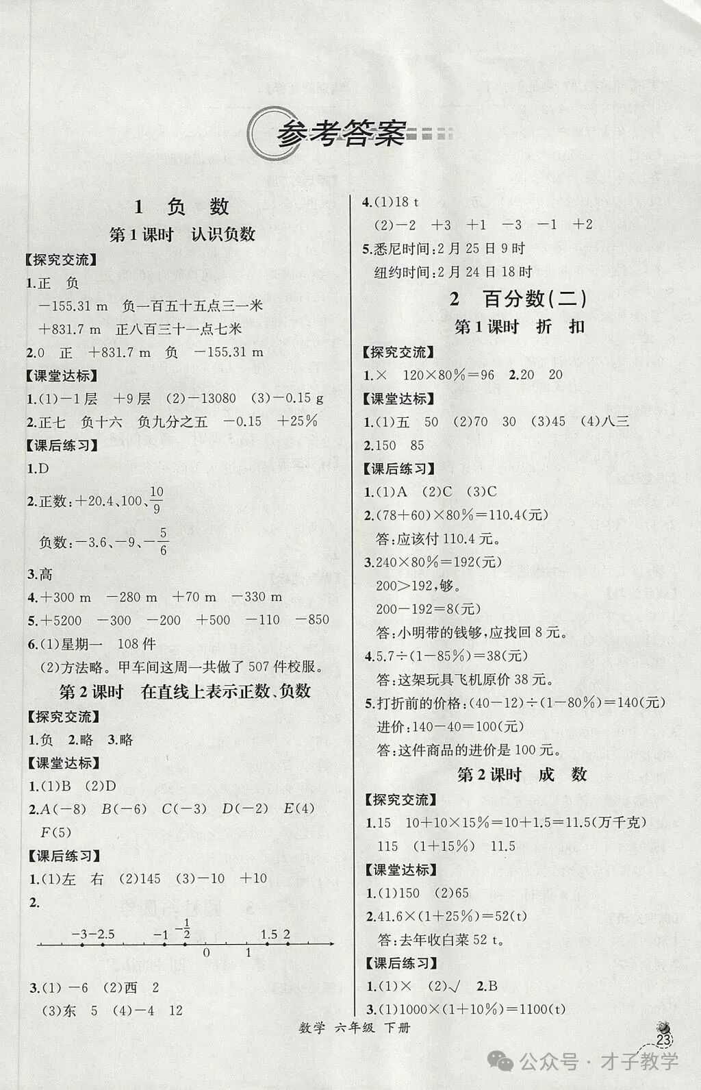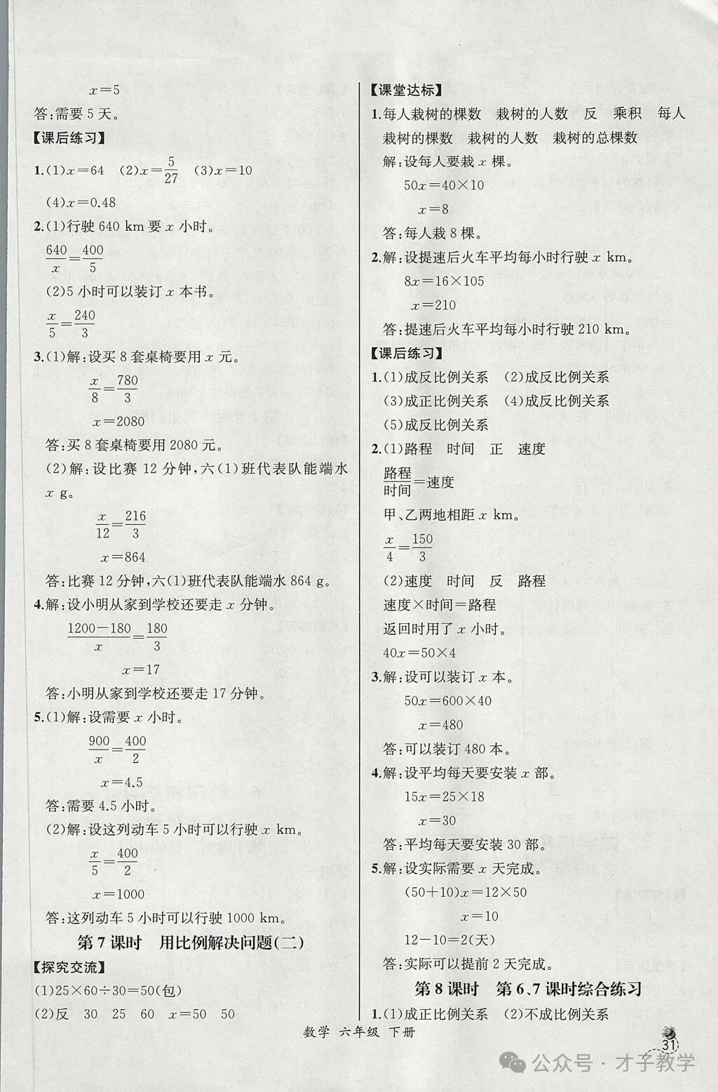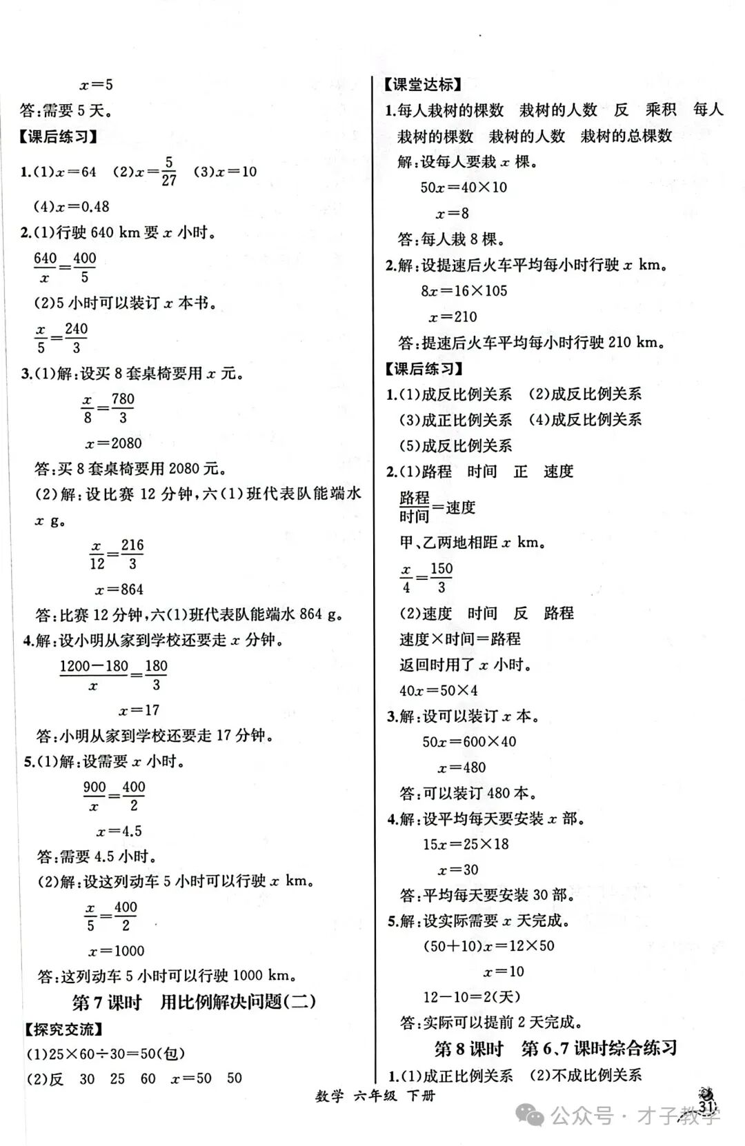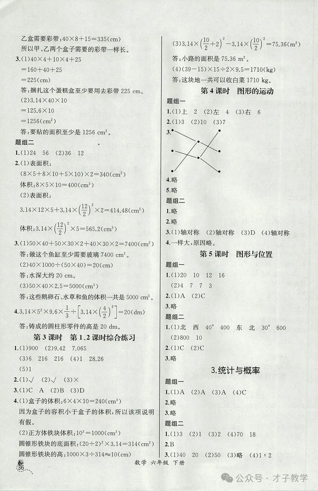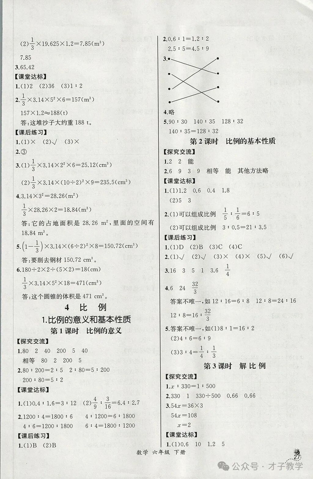 六年级数学下册课时练答案,可打印收藏
