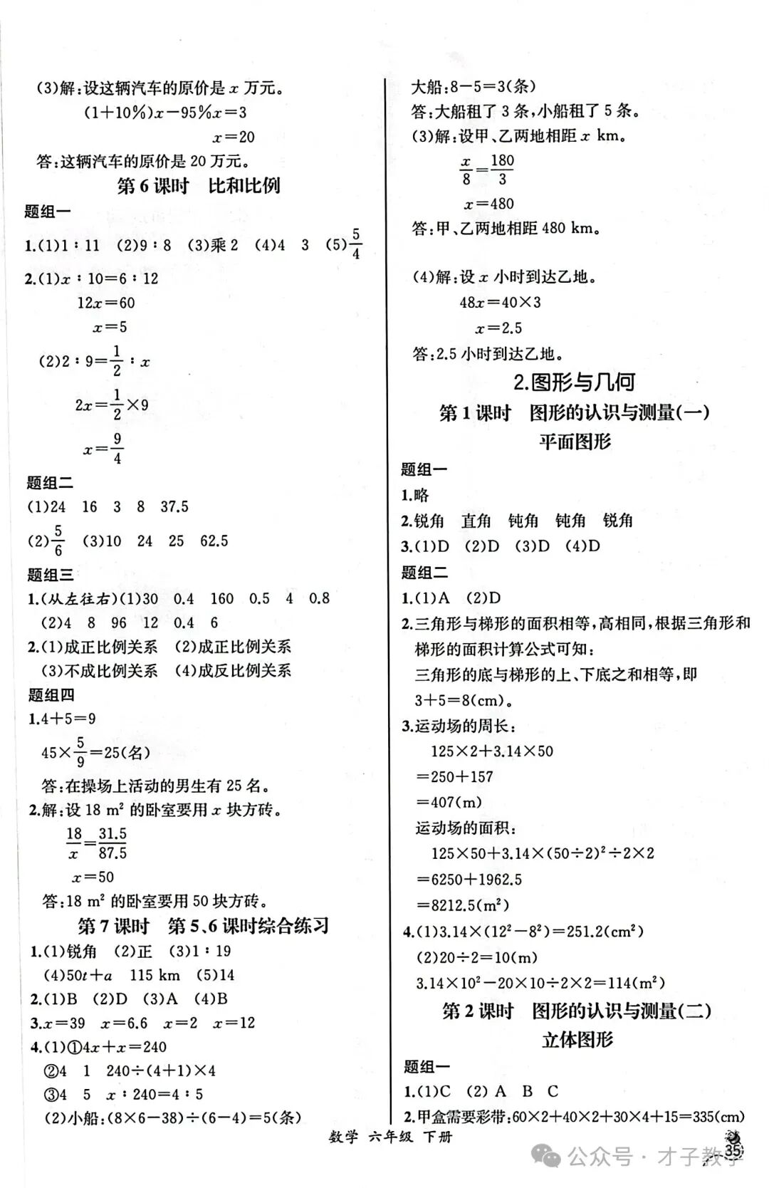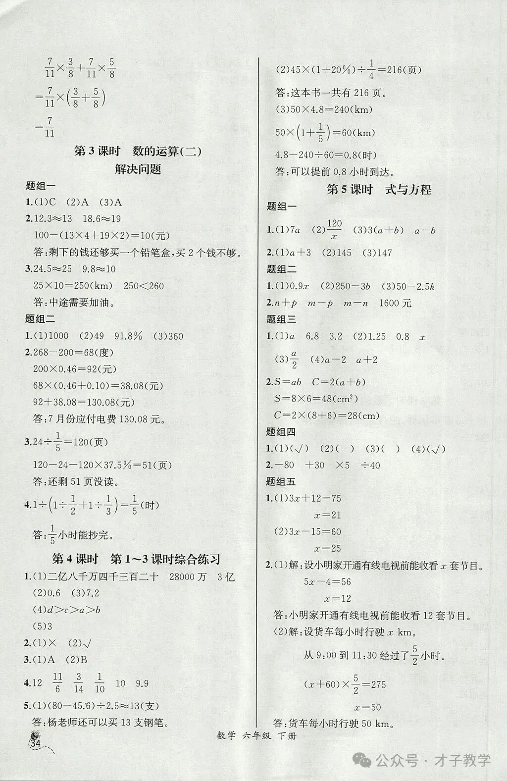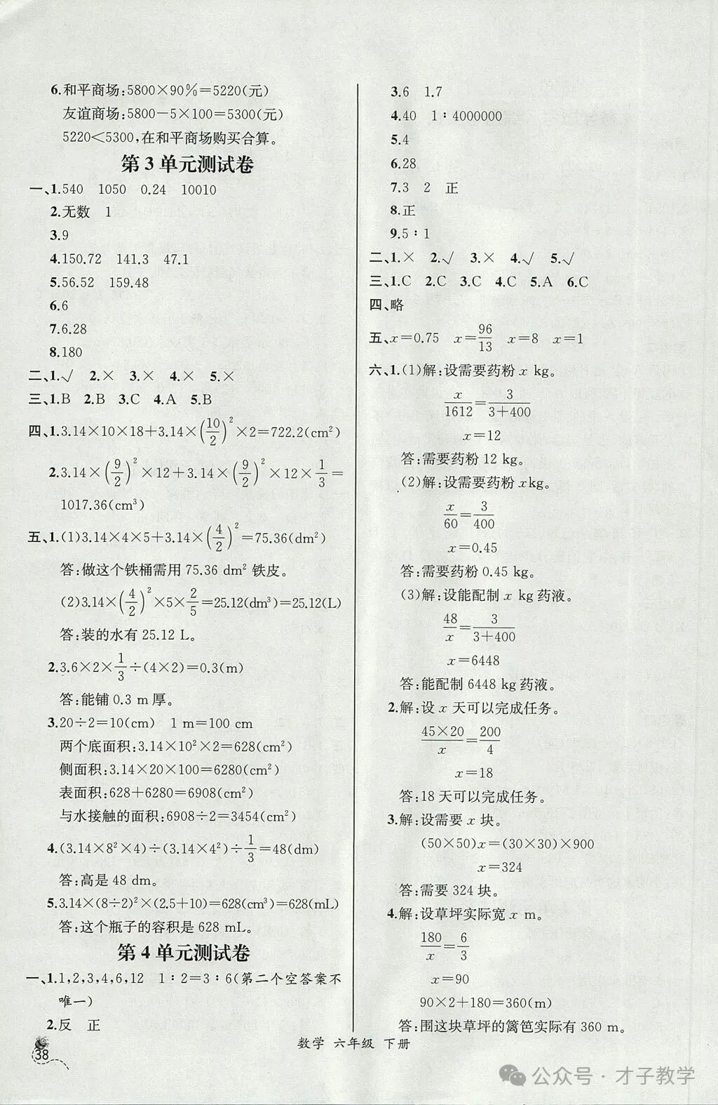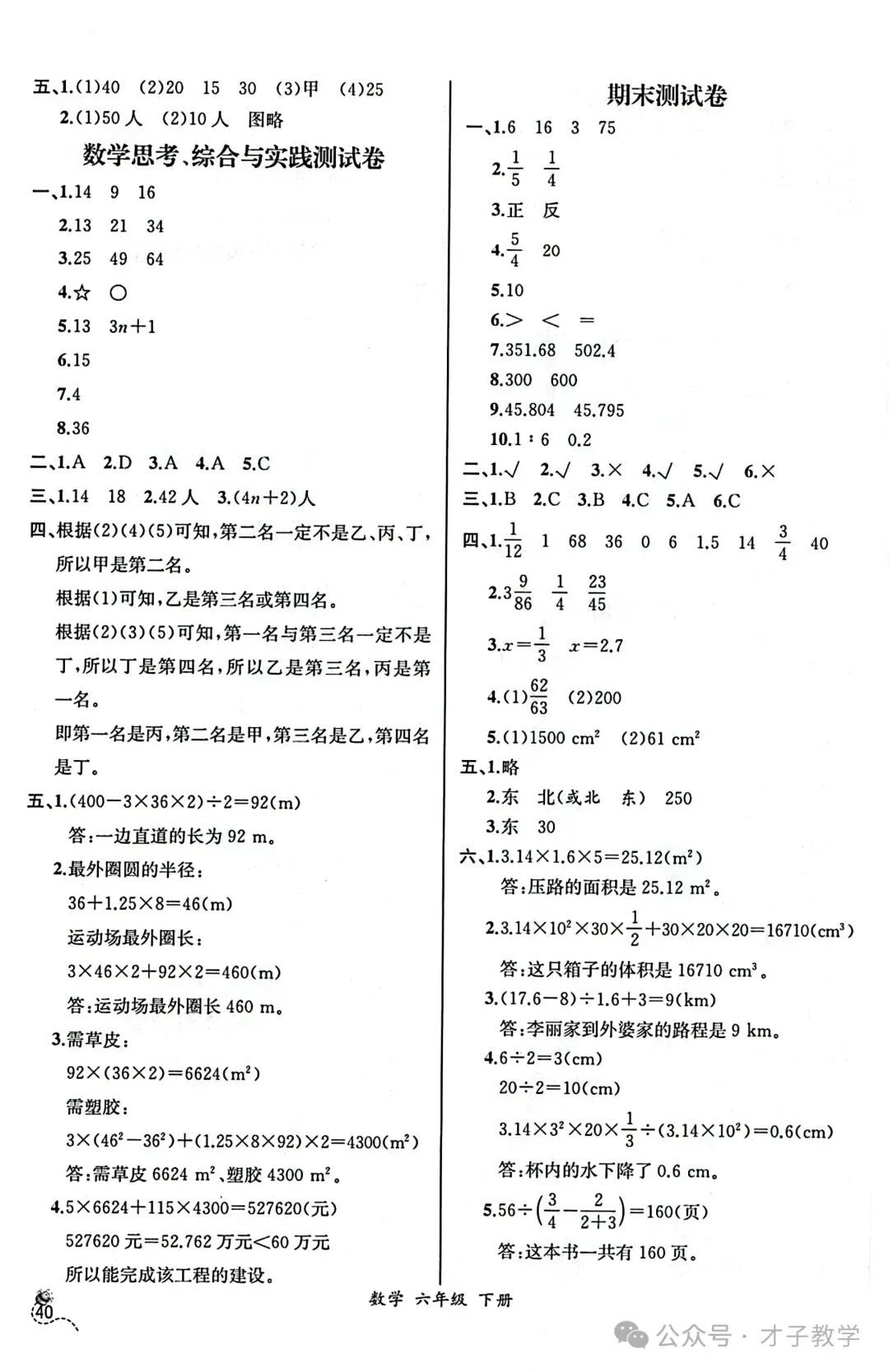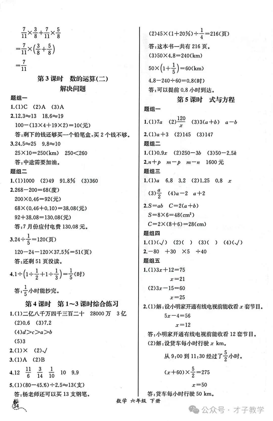 六年级数学下册课时练答案,可打印收藏