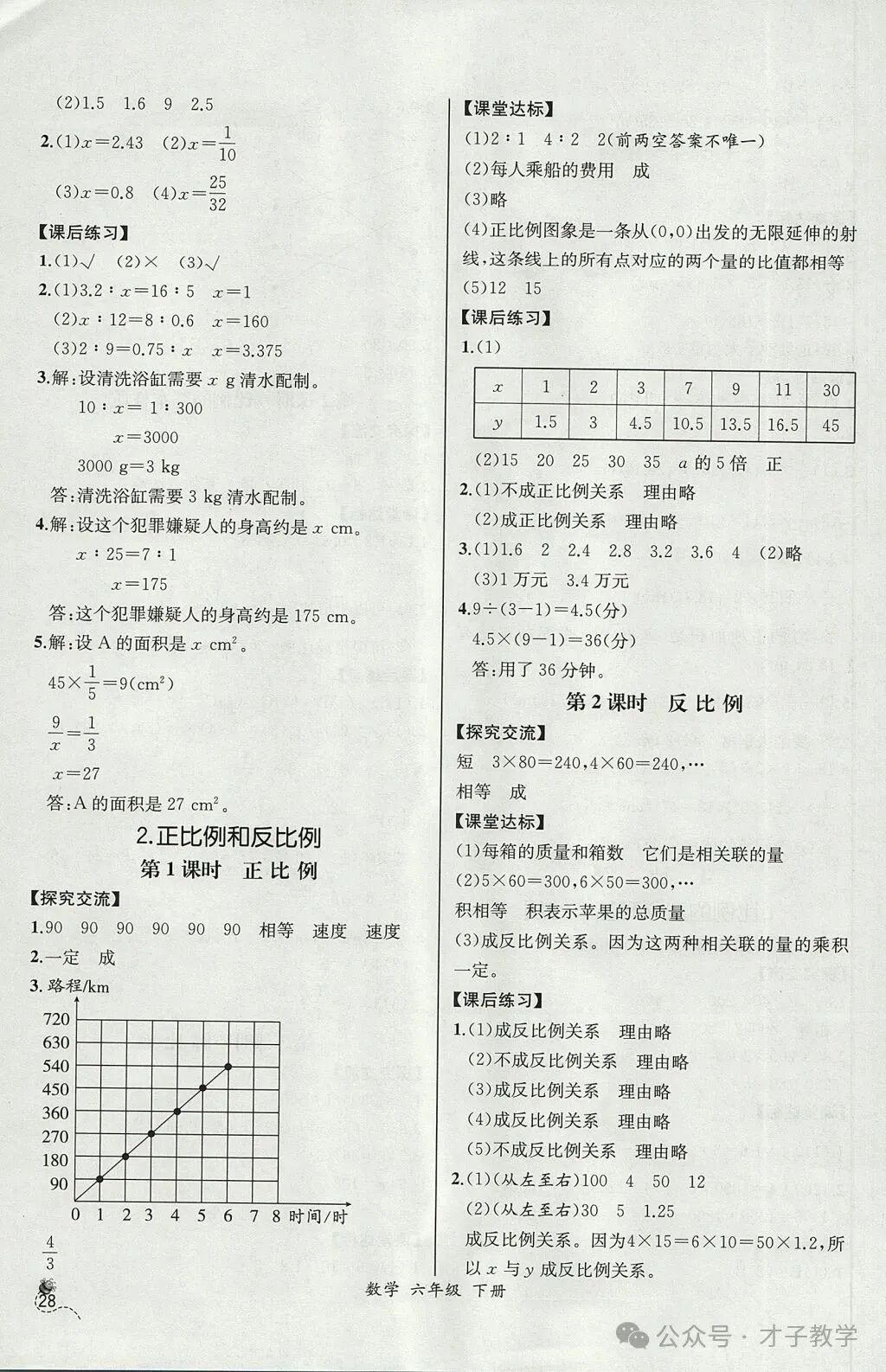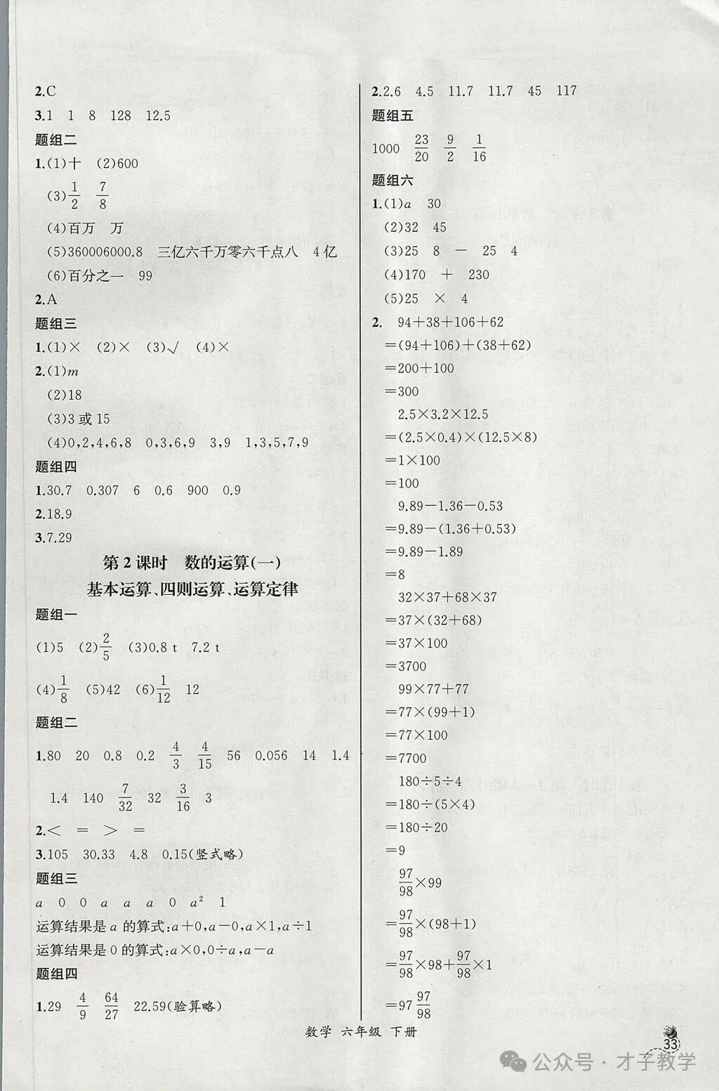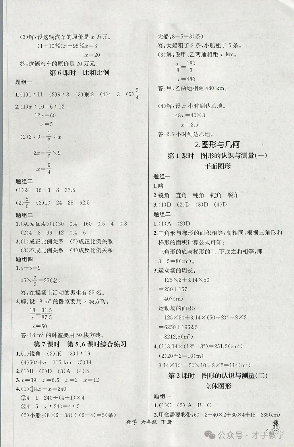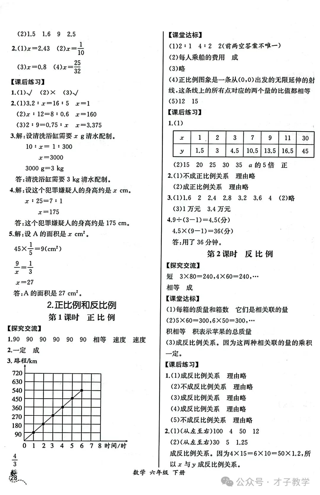 六年级数学下册课时练答案,可打印收藏