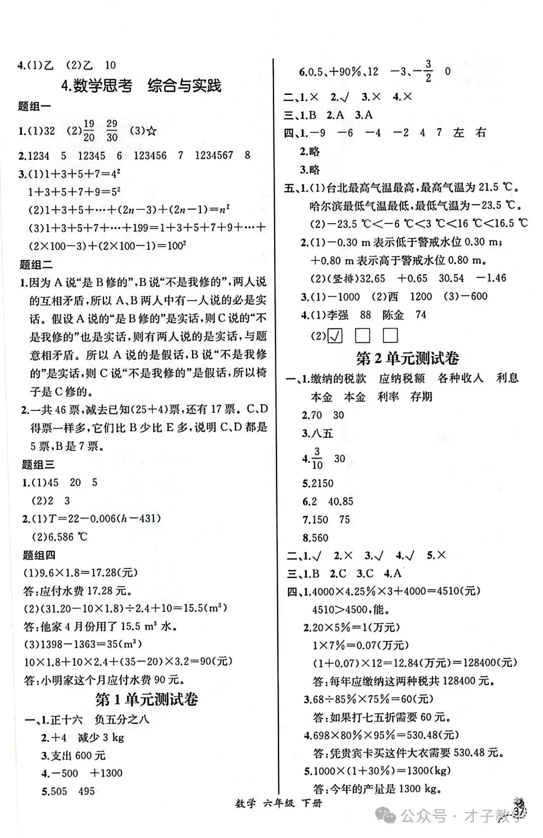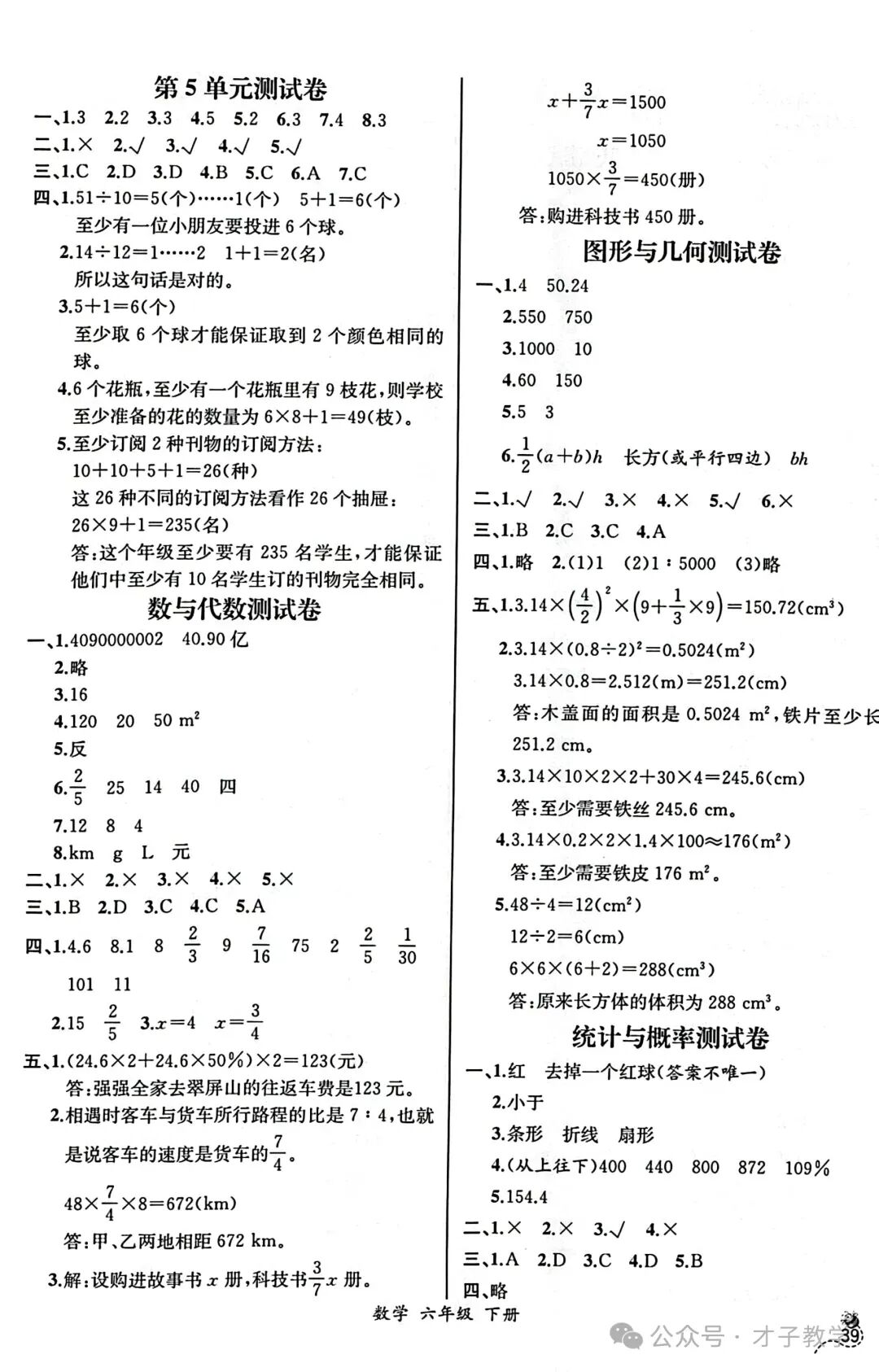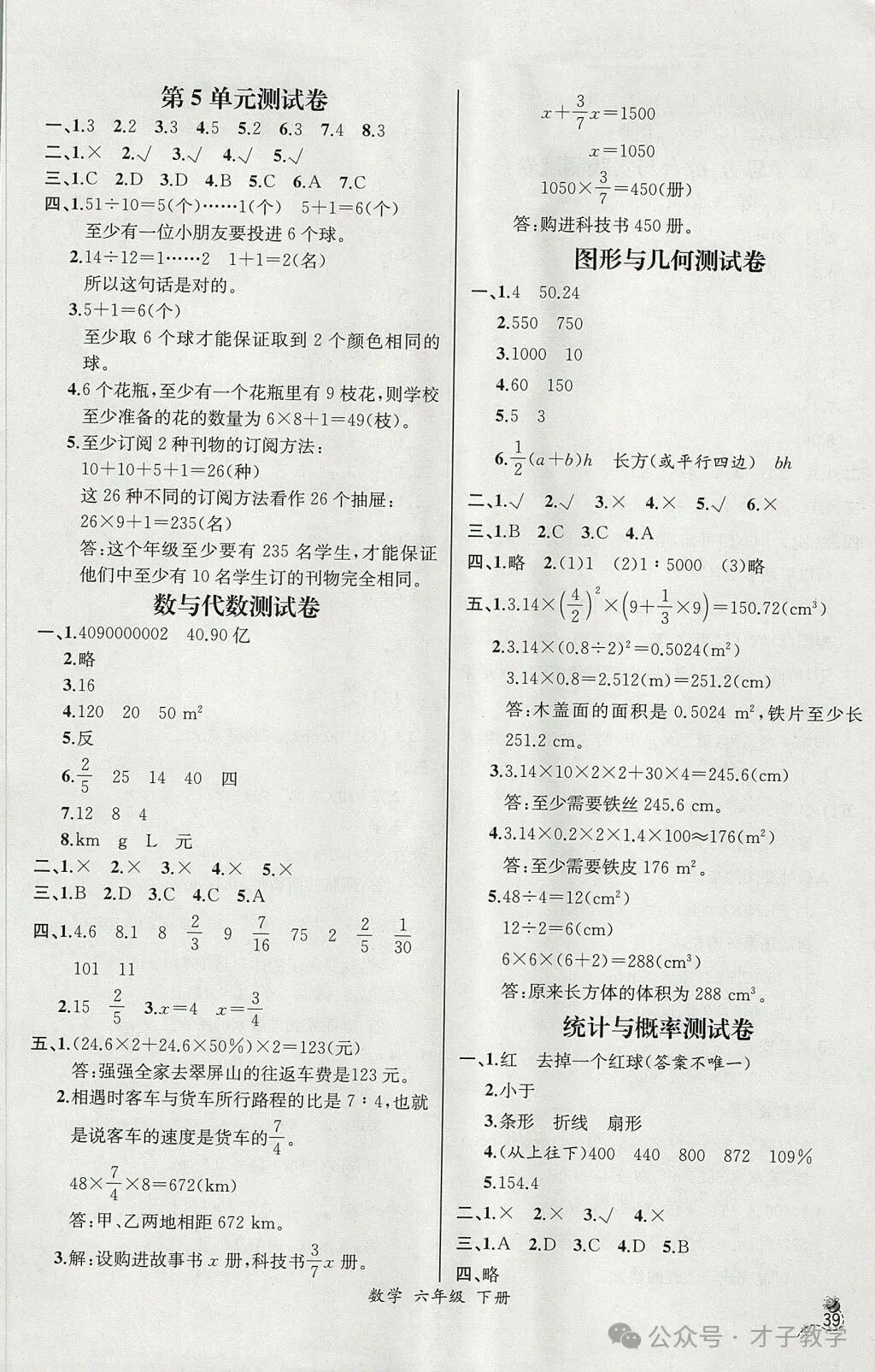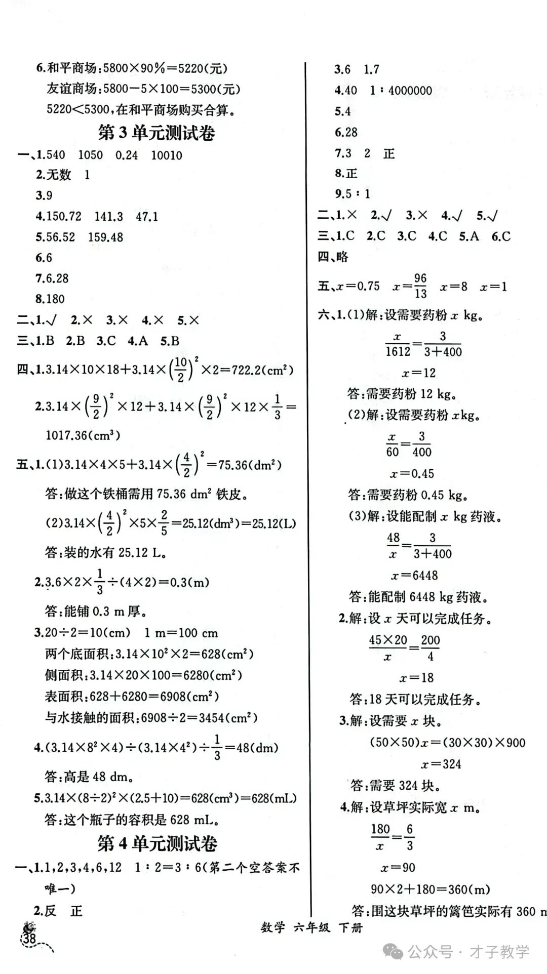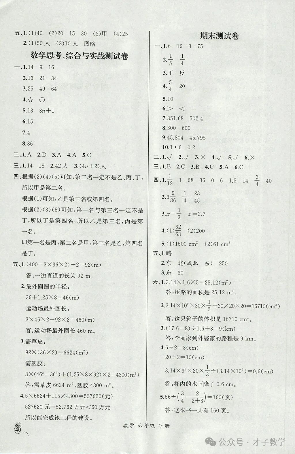 六年级数学下册课时练答案,可打印收藏