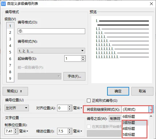 设置标题样式 自定义设置多级编号