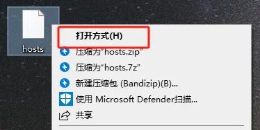 第十八步:桌面【hosts】文件,右击选择打开方式。