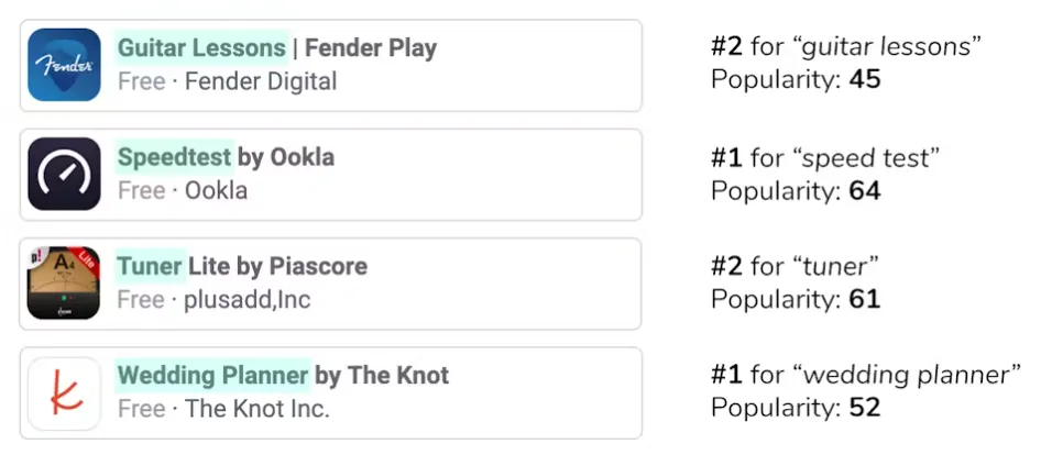 这个概念很简单:当用户在搜索栏中输入某些关键词时,如果应用标题、描述或其他元数据中巧妙地包含了这些关键词,那么这类应用就更有可能出现在搜索结果中。这会增加应用的下载量。