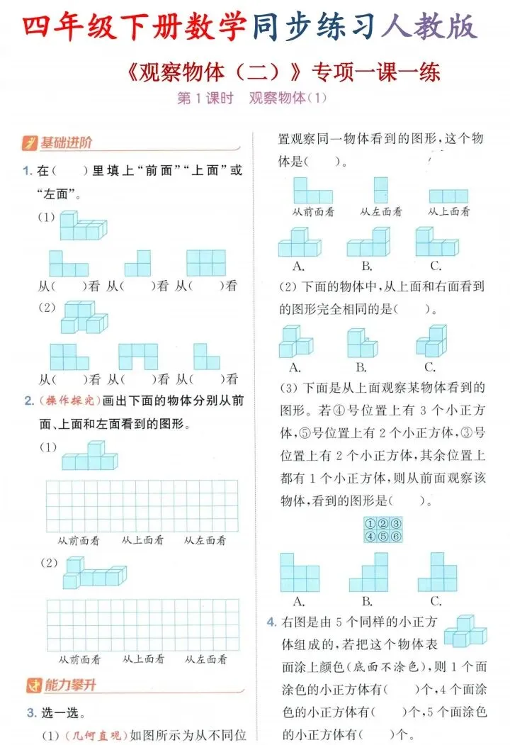 四年级下册数学同步练习人教版.电子版可下载打印!