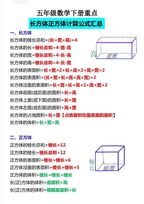 今天给大家准备好了!~3-6年级(下)数学必背公式大全丨可下载打印