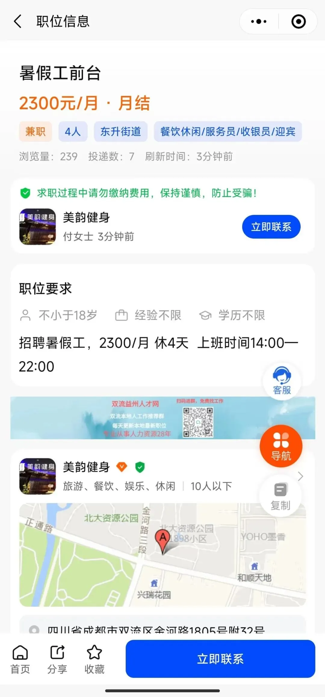 如何找到心仪岗位公司联系方式,如下点击立即联系