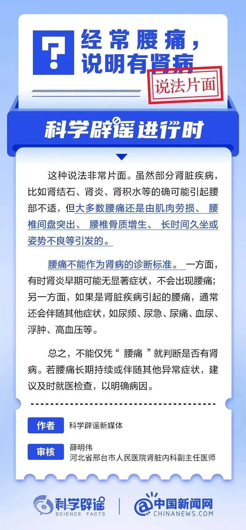 新吉乐科普丨经常腰痛,说明有肾病?