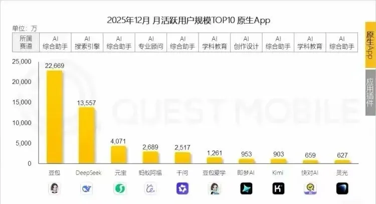 2025国内AI App活跃用户排行榜:豆包、DeepSeek、元宝决战紫禁之巅,谁才是真正的“效率之王”?