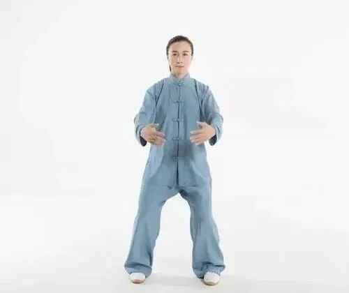 双膝微曲,不要硬撑;脚趾松软贴地,不抓;肩、肘、腕都轻轻垂下,让骨架立起来,而不是”顶”起来。