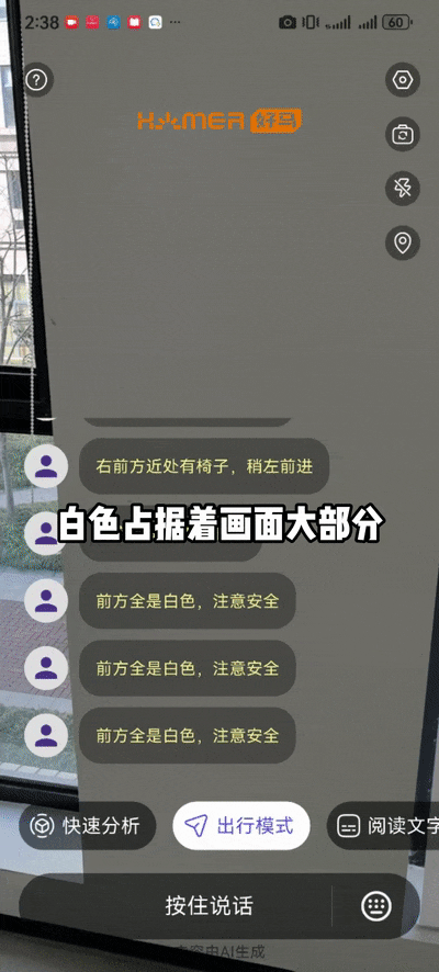 后台常有用户反馈:明明前面有路,为什么APP老是报“全是白色”?这通常是因为摄像头对准了单一颜色墙面(如白墙)。