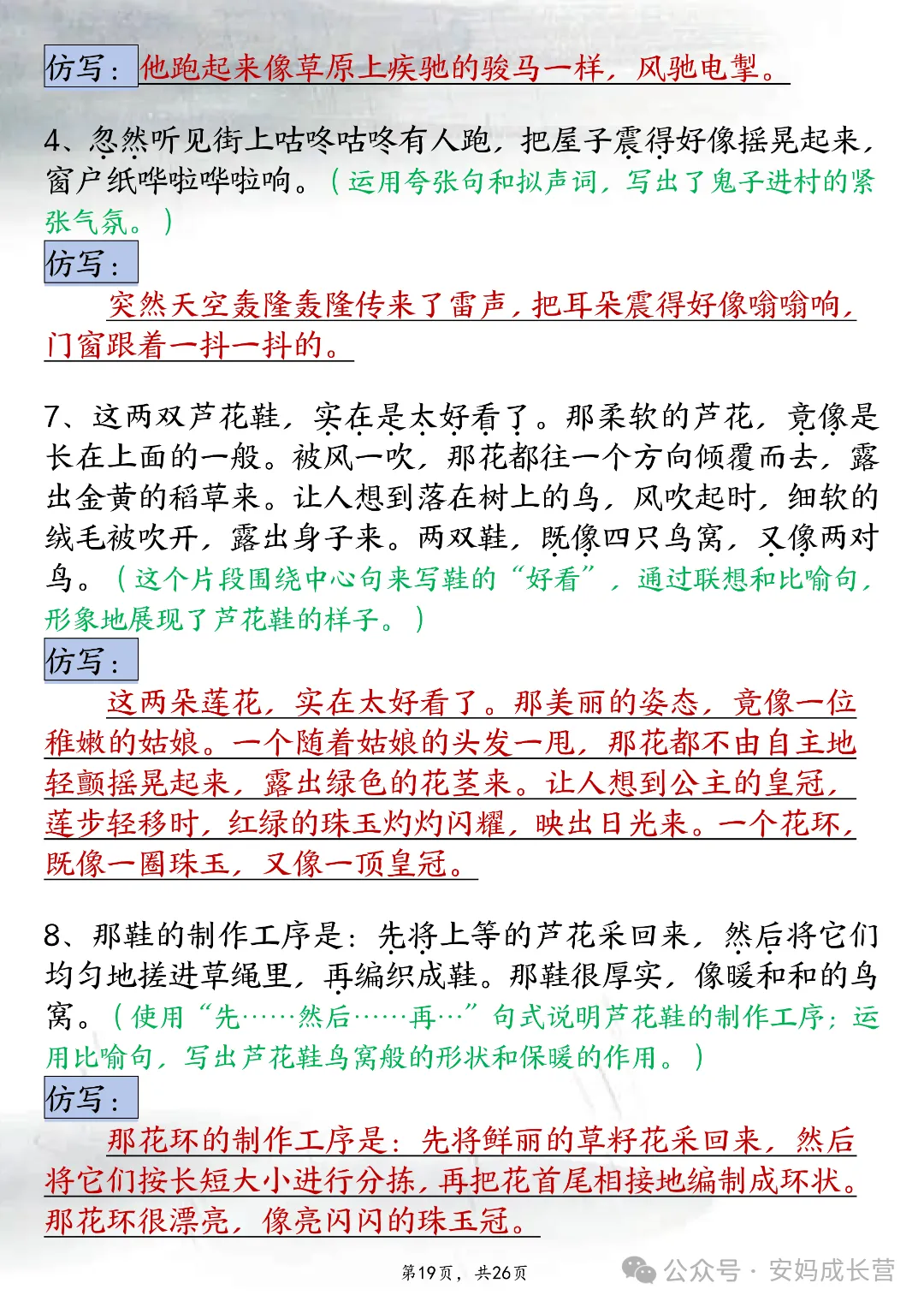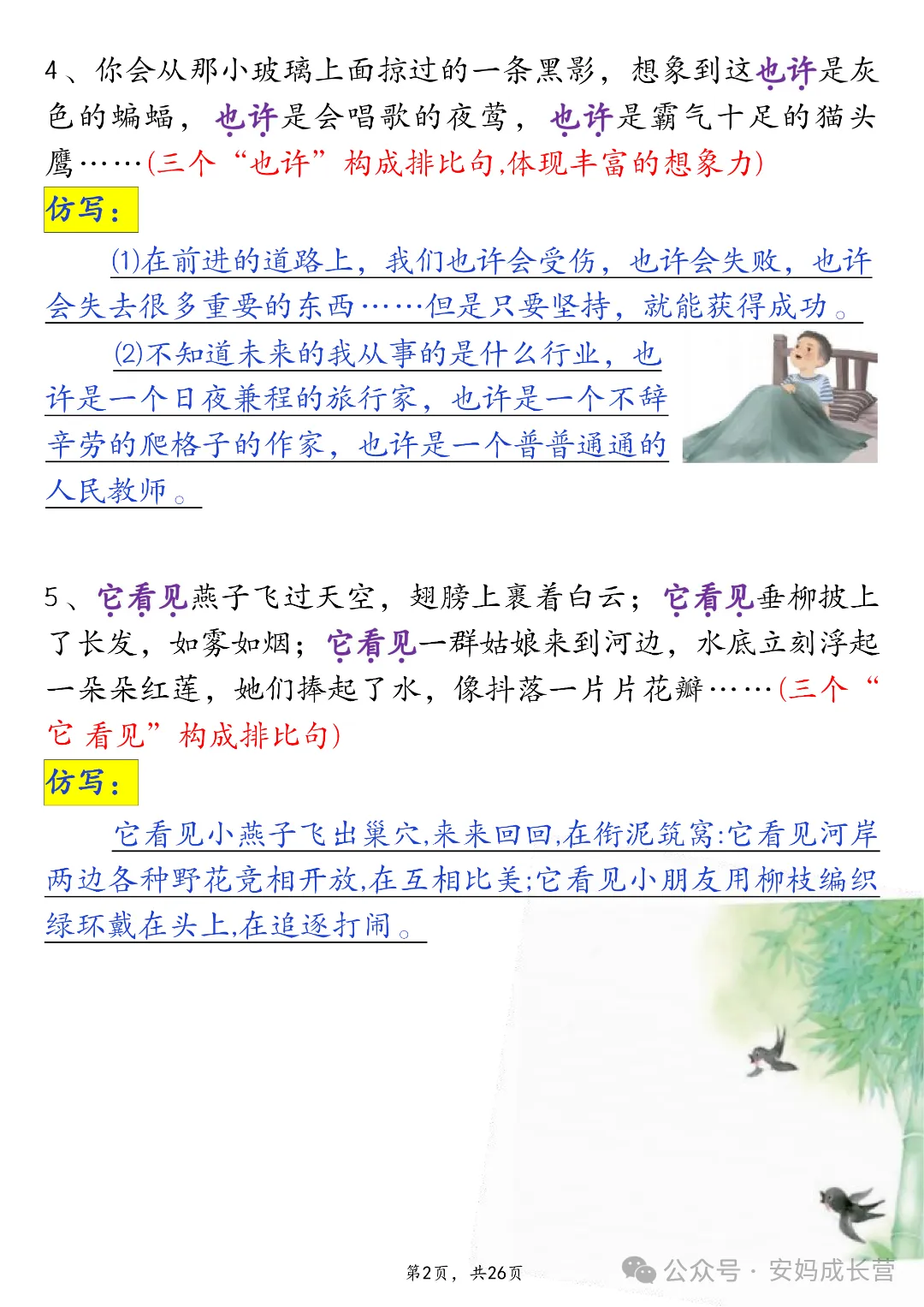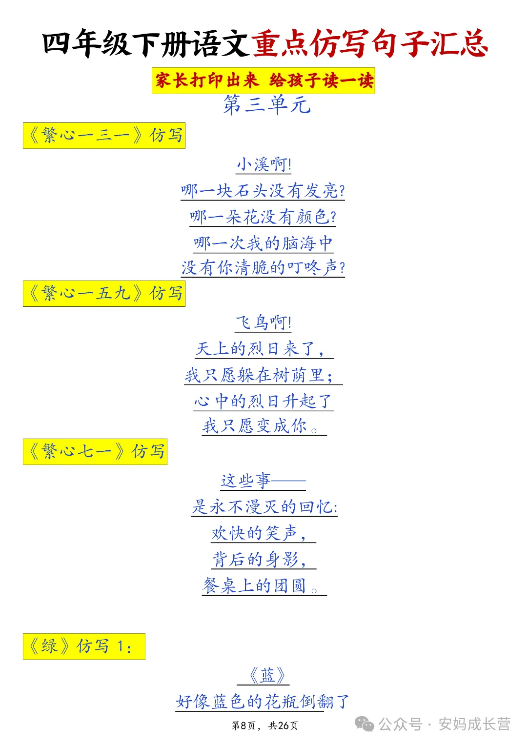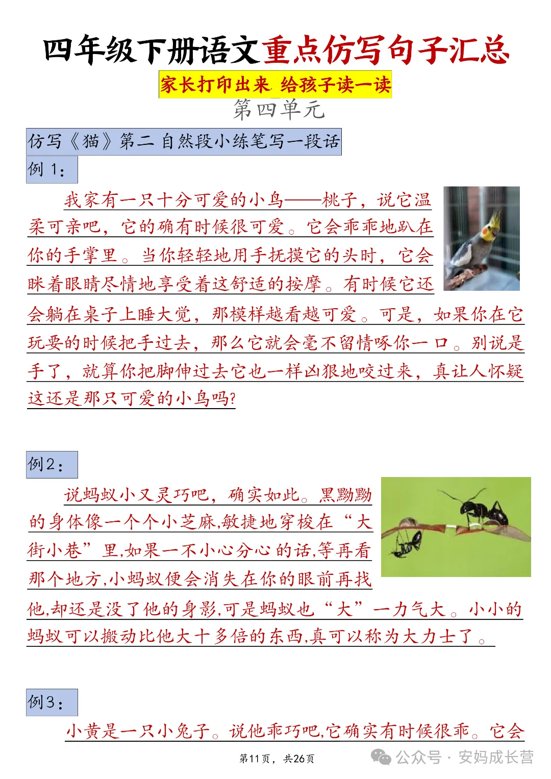 四年级下册语文《全册重点仿写句子汇总》,电子版可打印