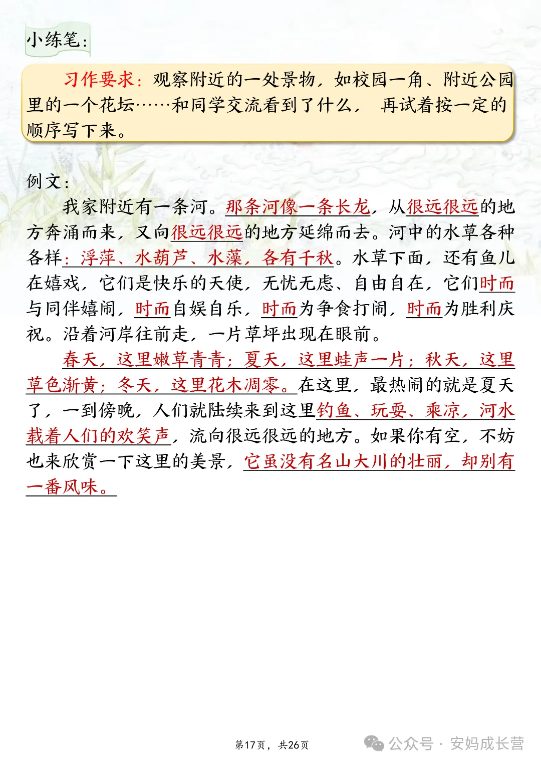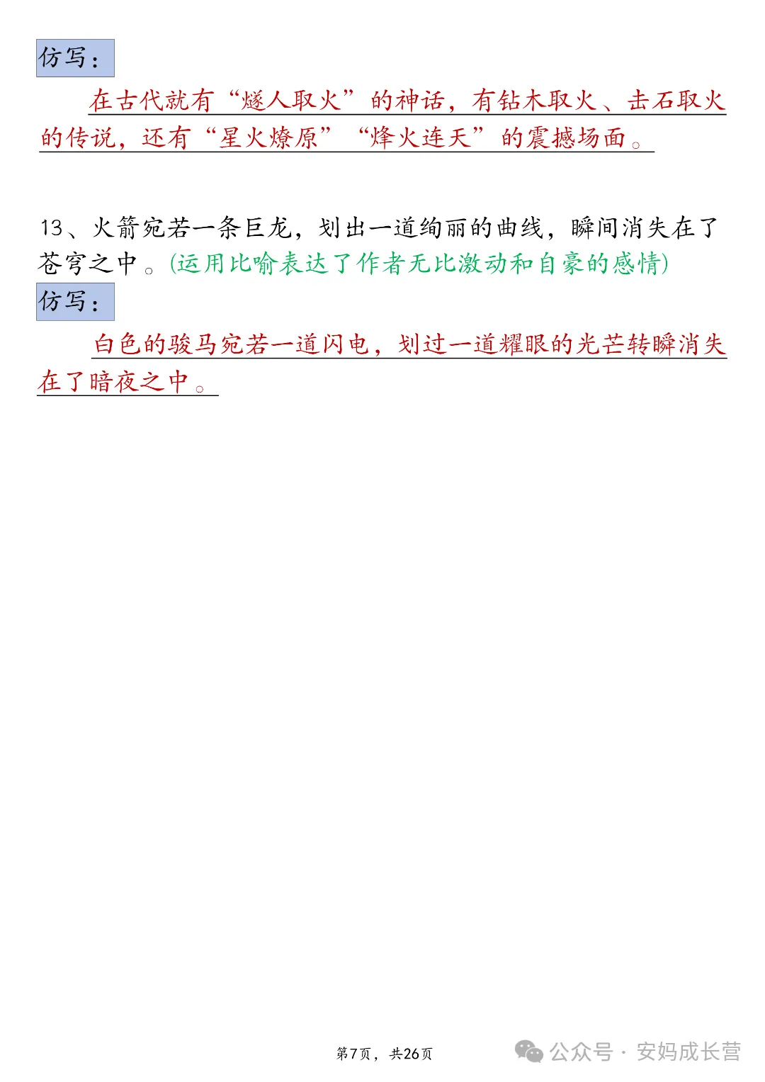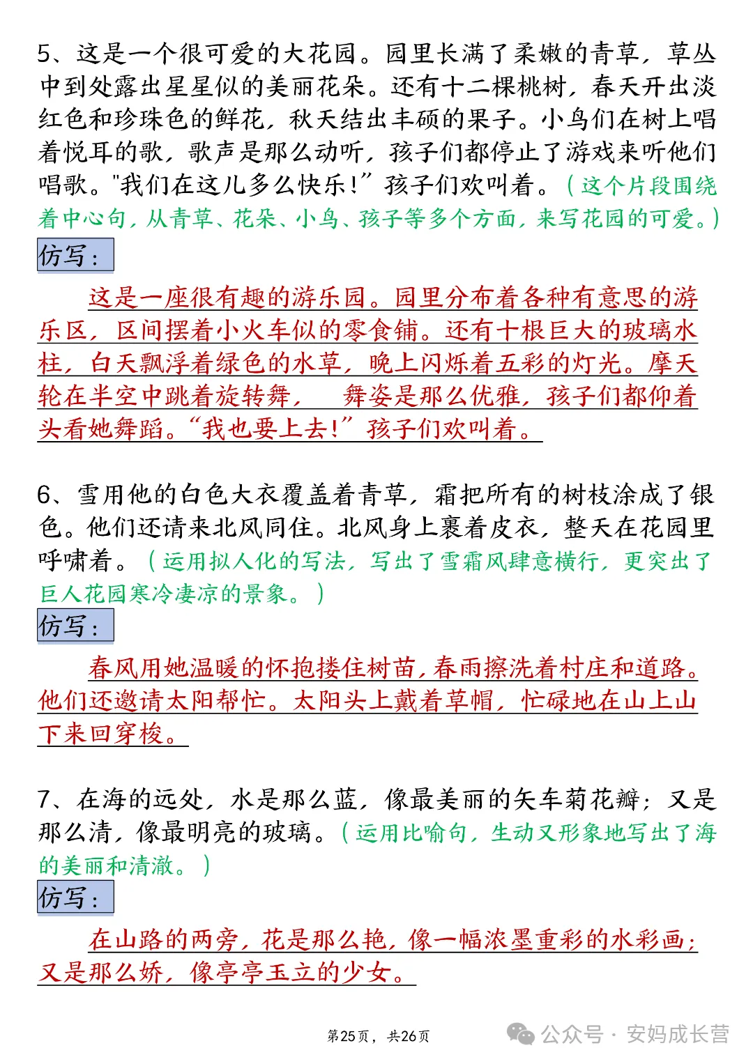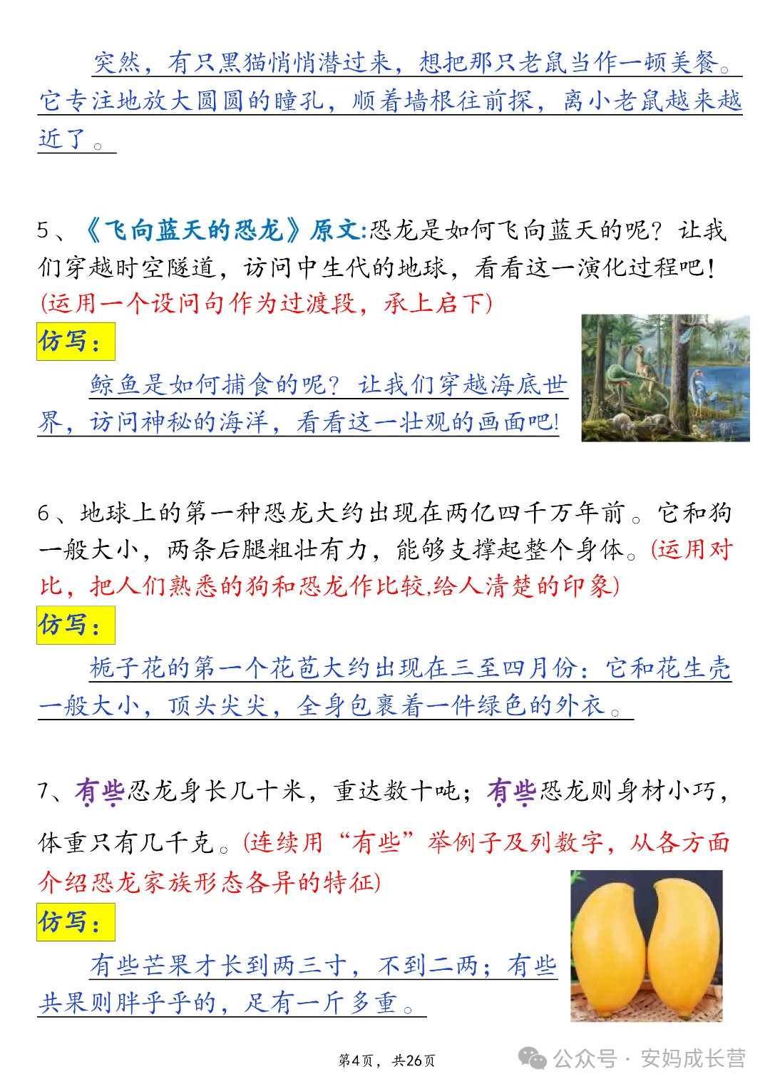 四年级下册语文《全册重点仿写句子汇总》,电子版可打印