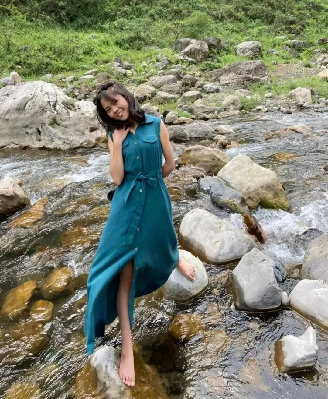 一眼看见一件绿色无袖长裙,价格一百五十块钱,果断买下,到今天我还在穿。