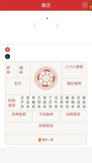 打开「天天老黄历」的瞬间,你会被扑面而来的传统美学惊艳到。不同于其他APP的花哨设计,这款软件采用了故宫红与明黄为主色调,界面点缀着祥云纹、回形纹等传统元素,连按钮都是篆刻印章的样式。有用户在应用商店评论区留言:”第一次见把黄历做得像艺术品的,截图发朋友圈被问是不是新出的国风游戏。”