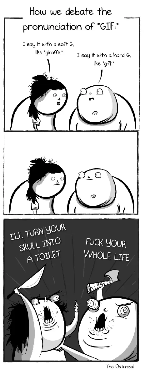 关于GIF的发音,还存在不小的争议:到底是和“gift”中的“g”一样发/g/的音,还是和“giraffe”中的“g”一样发/dʒ/的音?