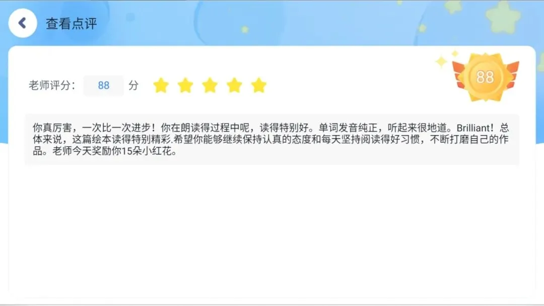 积分奖励:完成任务获得星星、红花、奖章,积分还可兑换好礼,让学习更有动力