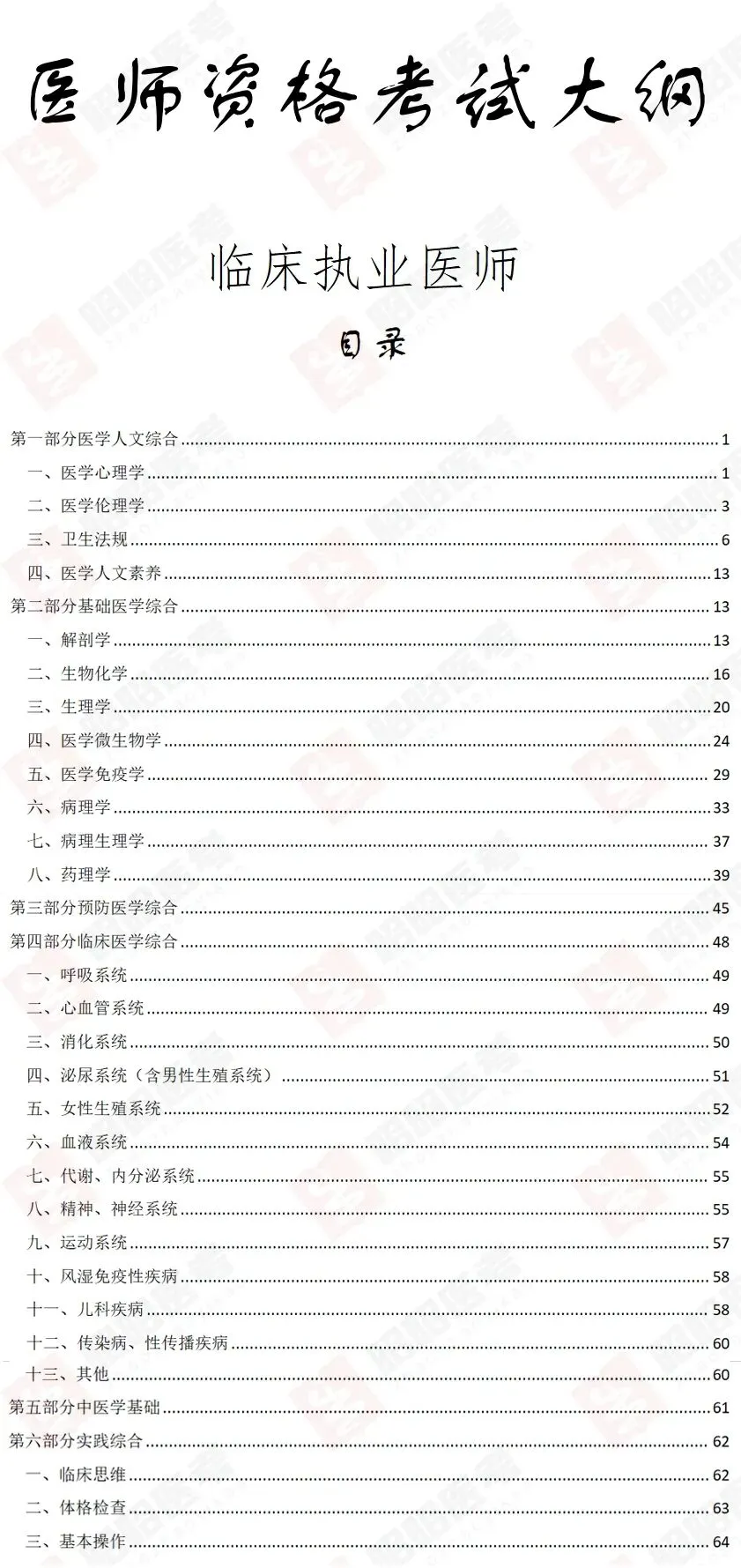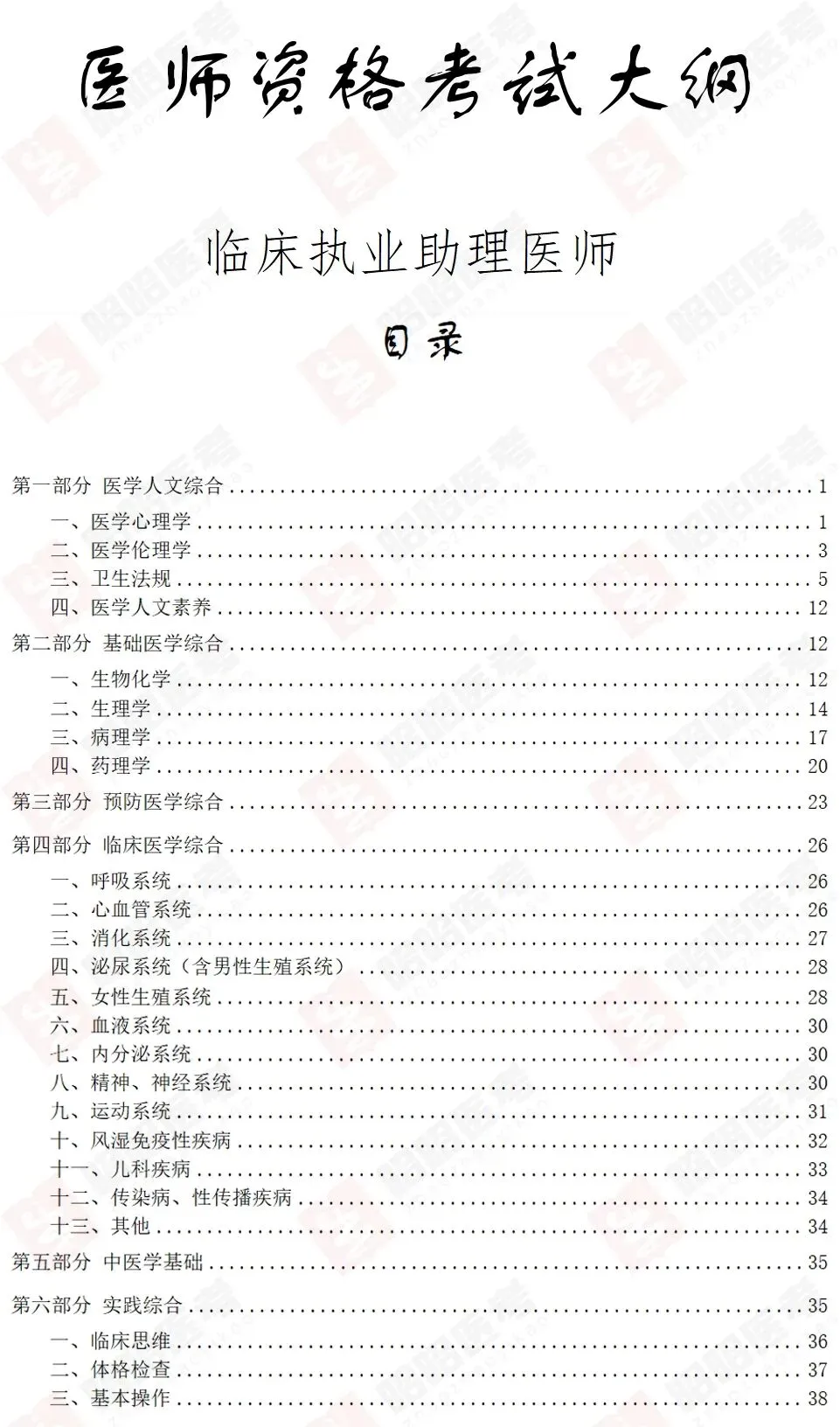 《医师资格考试大纲(医学综合考试2024年版)》