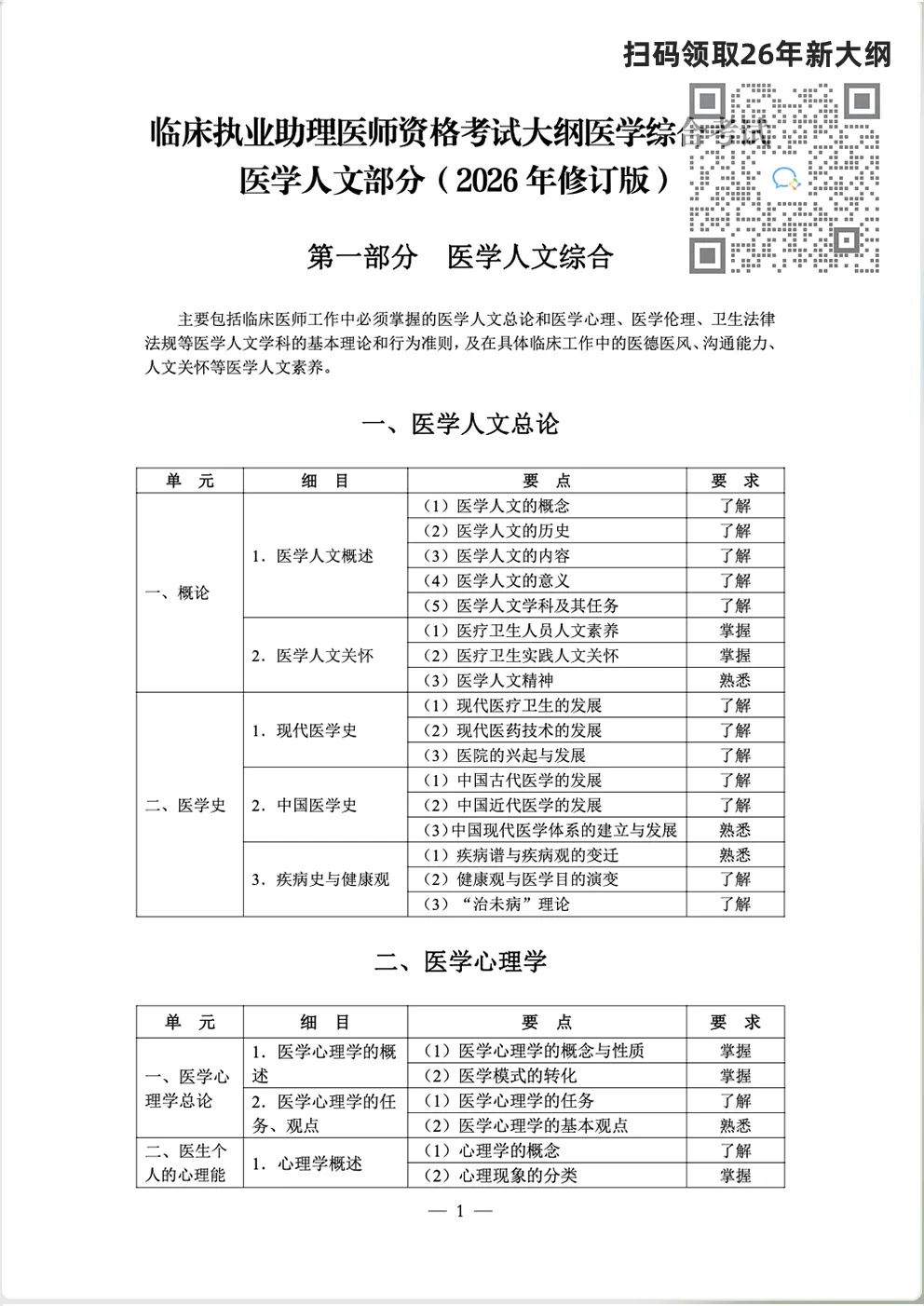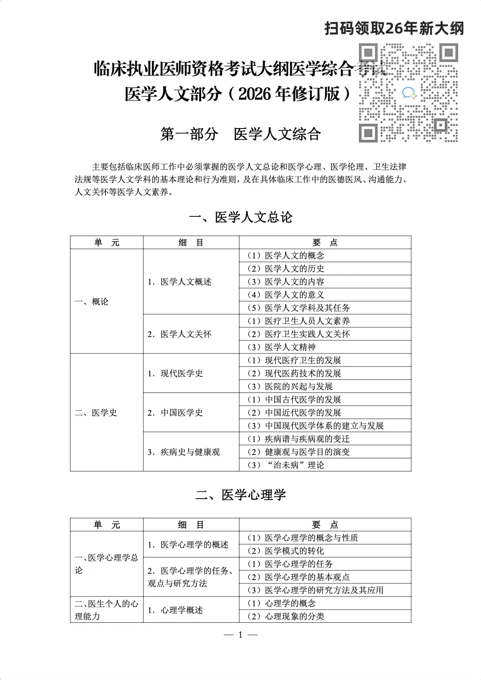 《医师资格考试大纲人文部分(2026年修订版)》