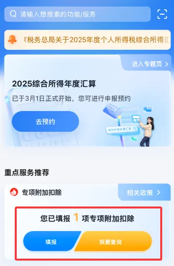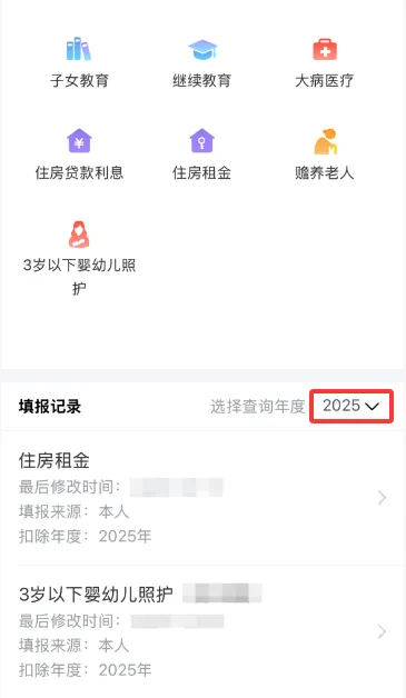 点击首页正中间【2025综合所得年度汇算专题页】,进入申报界面,若出现选择申报年度,选择2025年即可。
